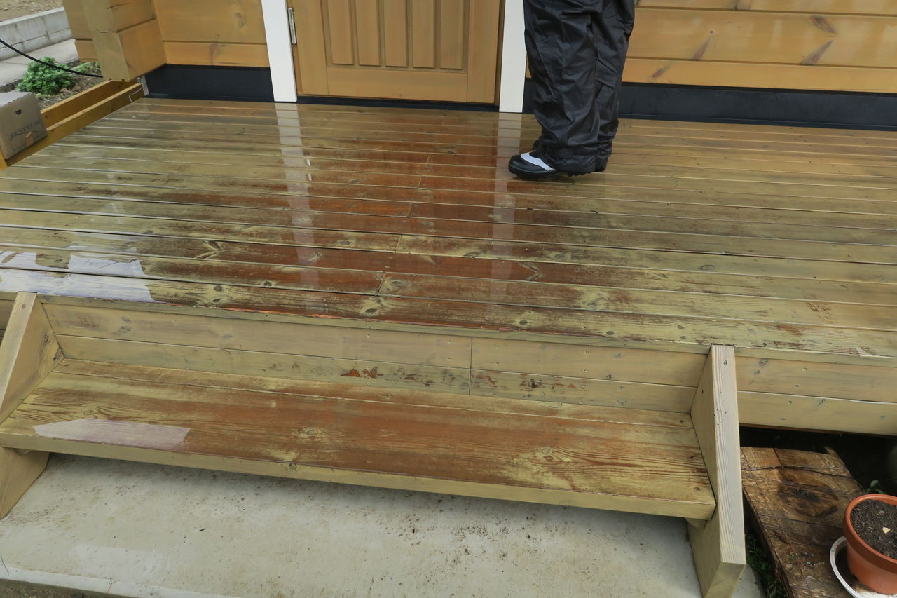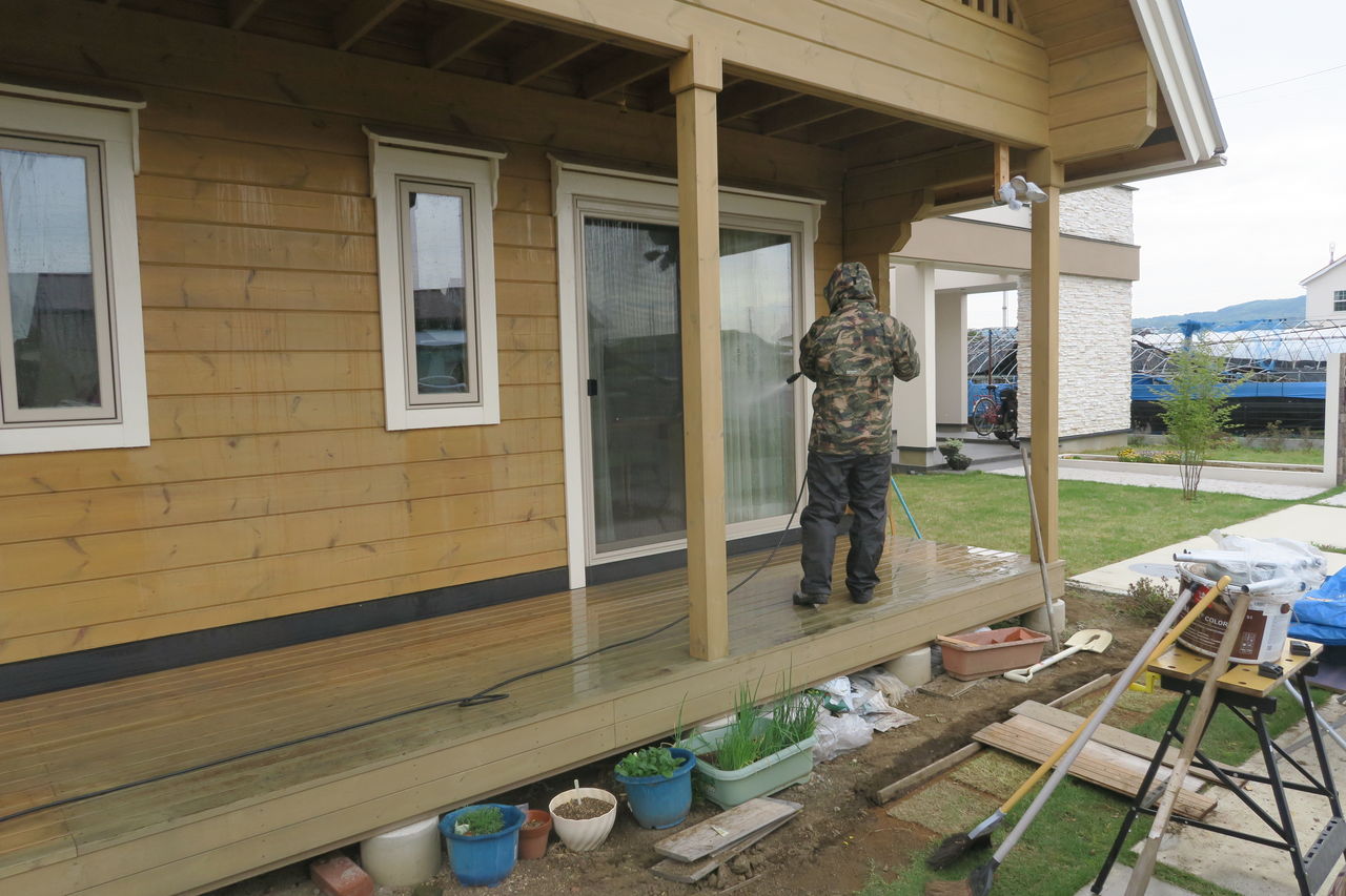 ログ組で周りを組み立てます。塗装はレンガ色の感じで塗ります