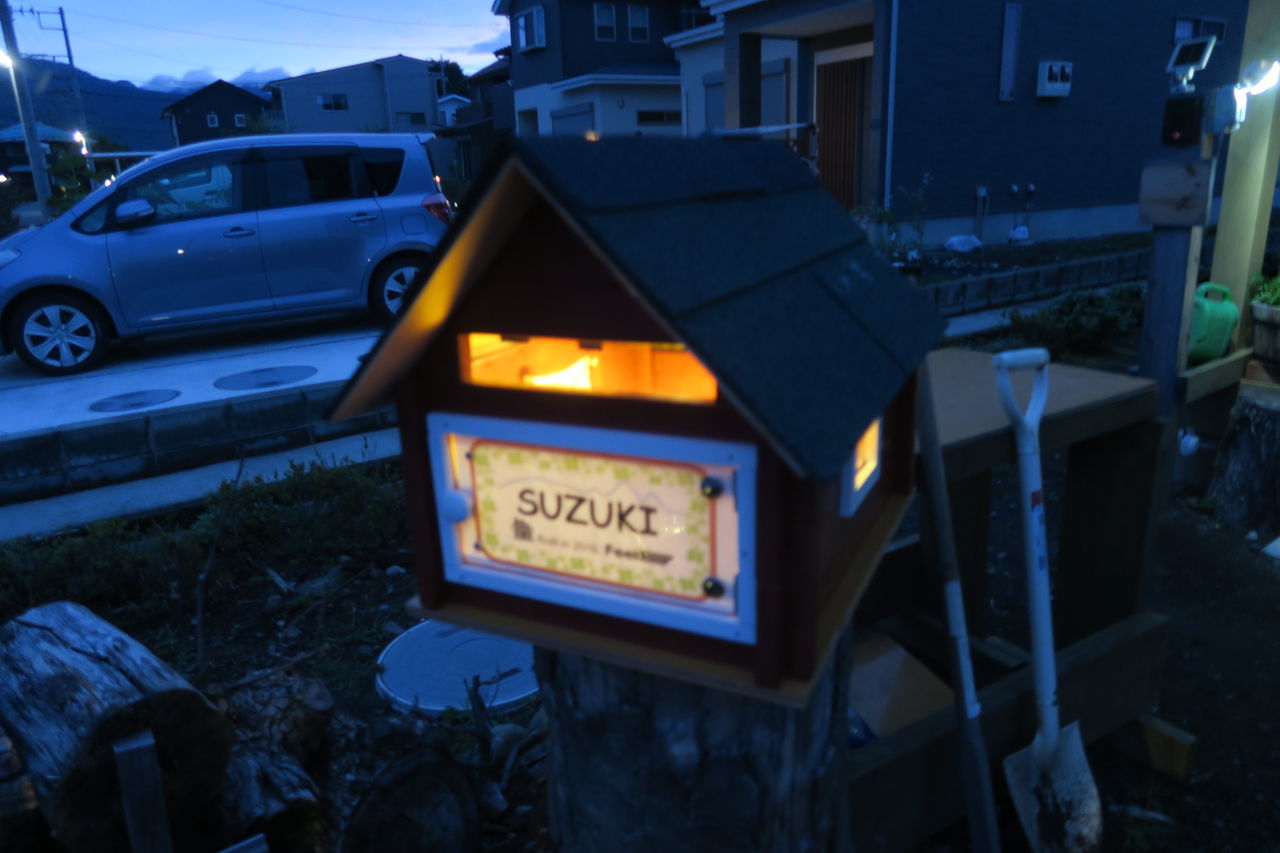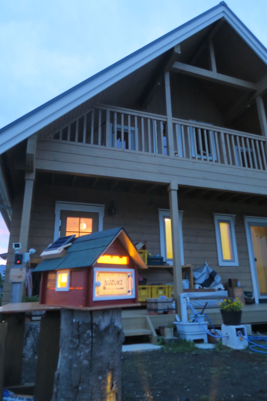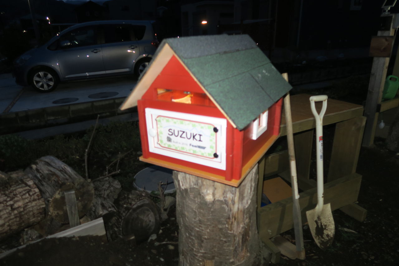 更に太陽光パネルを屋根に取り付け、暗くなると内部がライトを点灯する仕組みにしました。