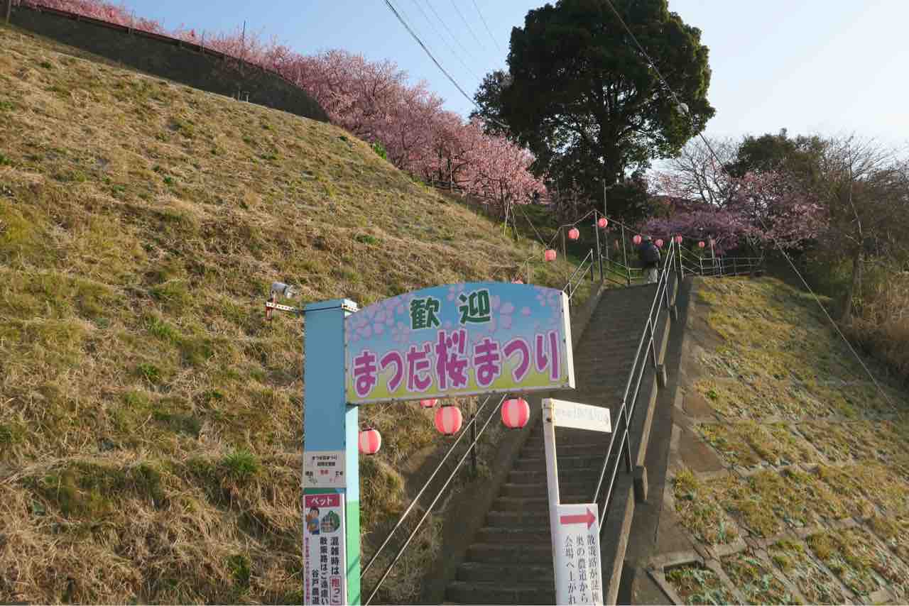 階段を登っていくと桜が咲いている斜面が見えました