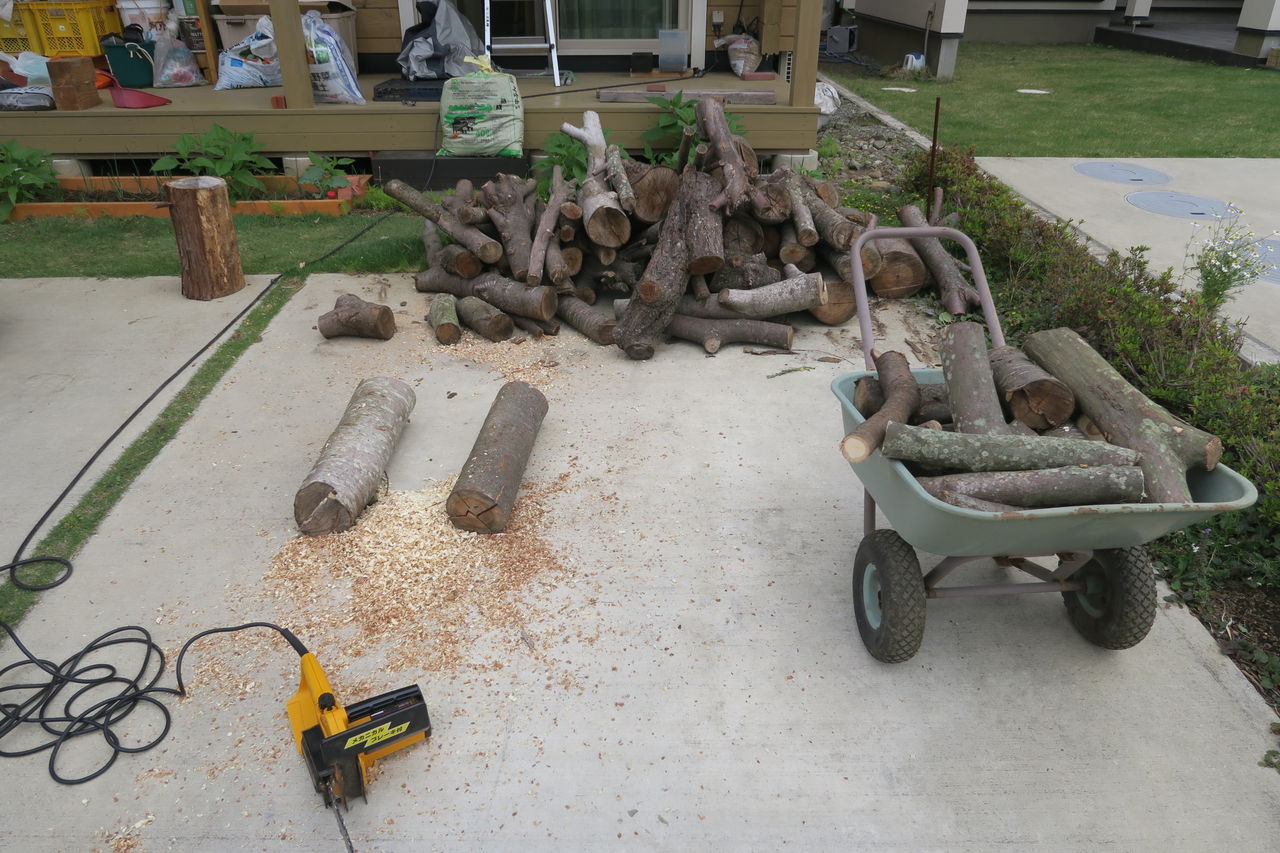 長い木を薪ストーブに入る長さにチェーンソーで切ります。