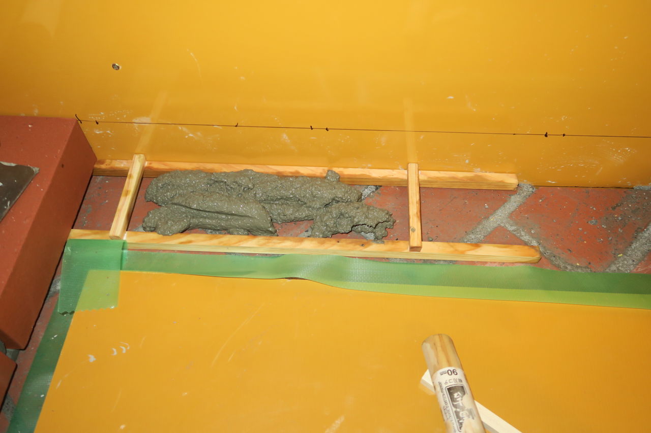 炉台の壁積み上げ作業の最上部(13段目)が完了しました