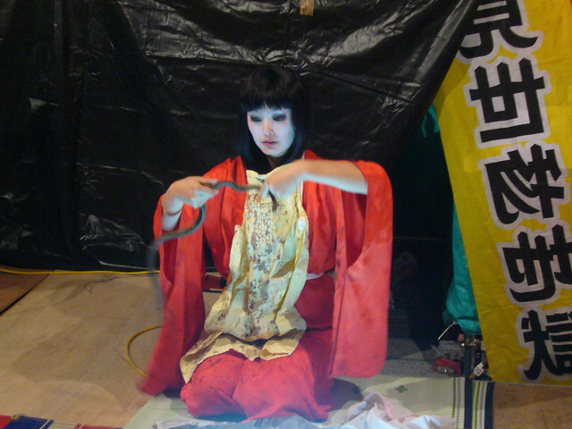 ところで見世物小屋を追っかけ始めてからというもの、オフィシャルな情報というのがない世界なので手当たり次第にいろいろ書籍やらネットやら調べていると、ときどき「ヘビ女=小雪太夫の正体は..元某劇団の女優の某さんです」と、したり顔でブログ等に書いてるのを目にしますが、勘違いしている人が多いです。