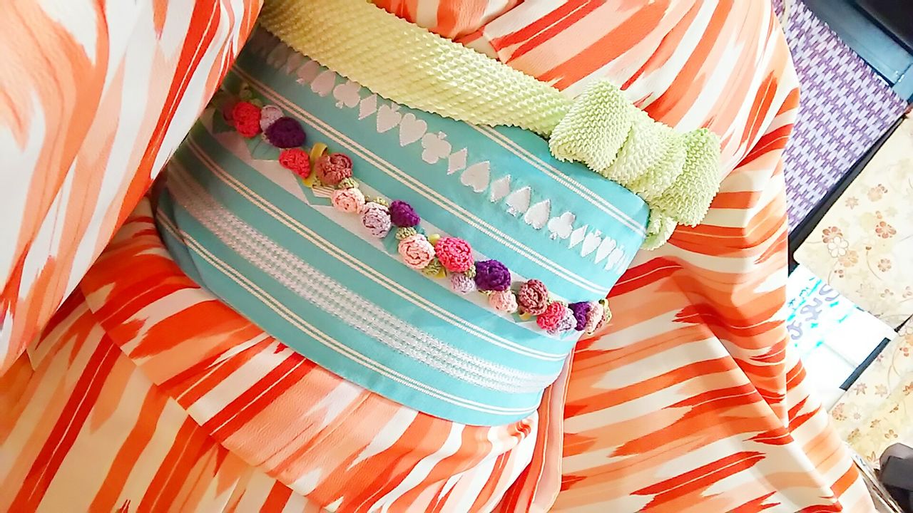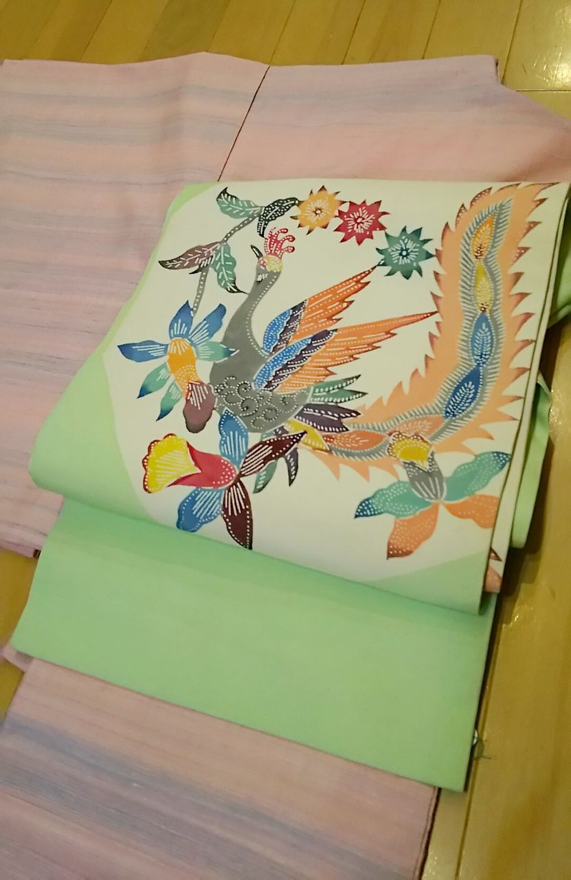 ミントグリーン系の爽やかで明るい黄緑色は、明るいお色のお着物にも、また紺地などの落ち着いたお色のお着物にも、ぴったりで様々なお着物と相性抜群!(о´∀`о)
