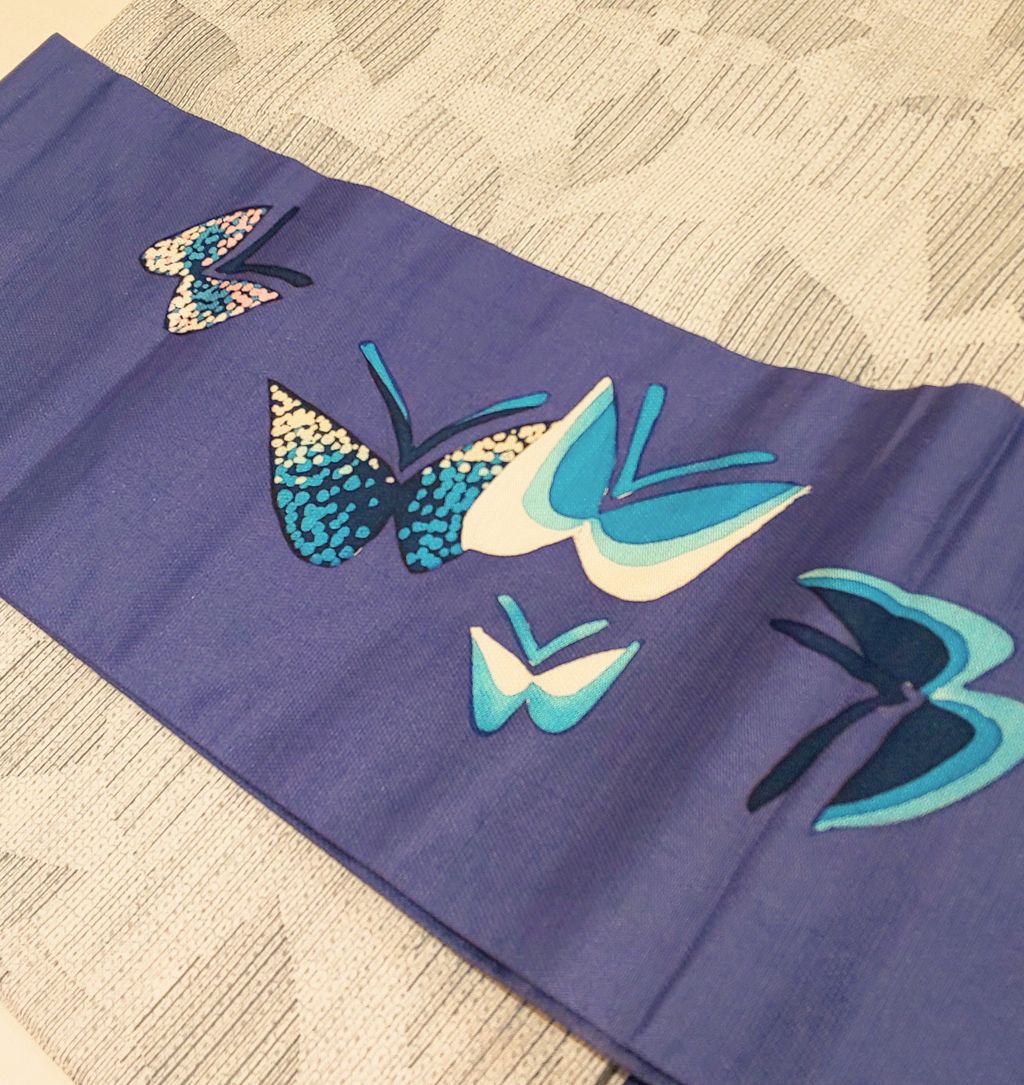 柔らかな帯地に幻想的な蝶々さんが染められた素敵な帯です(*´∇`*)