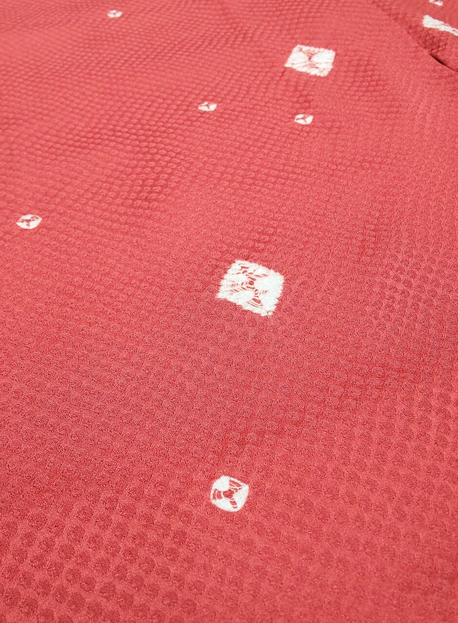 てろんと柔らかな縮緬地はよく見ると鹿の子絞りの柄を地紋として織り出しています。
