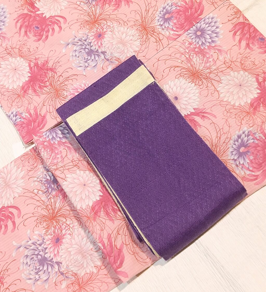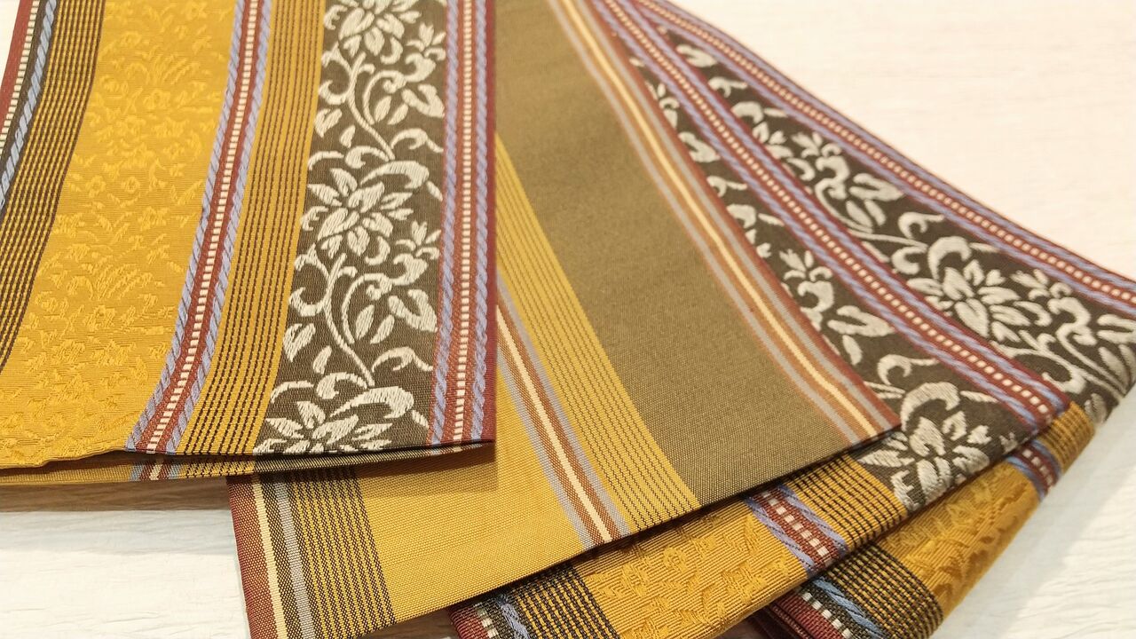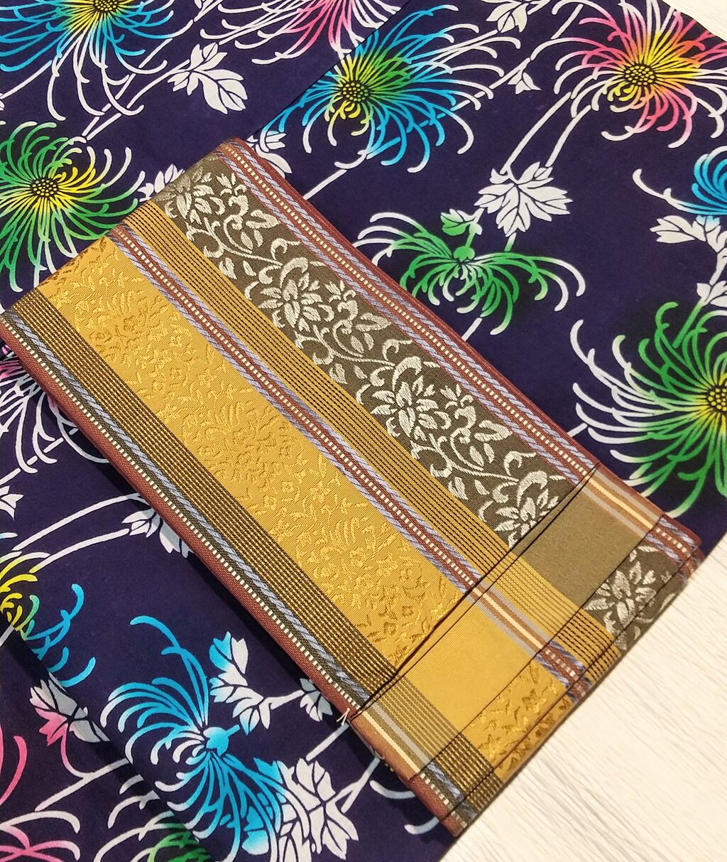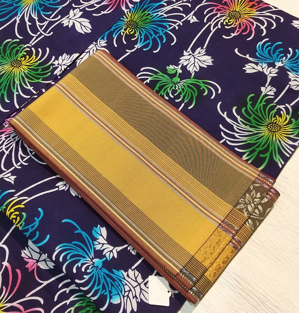 注染の浴衣 乱菊柄~博多織りの地紋が綺麗な秋色の半幅帯~です!