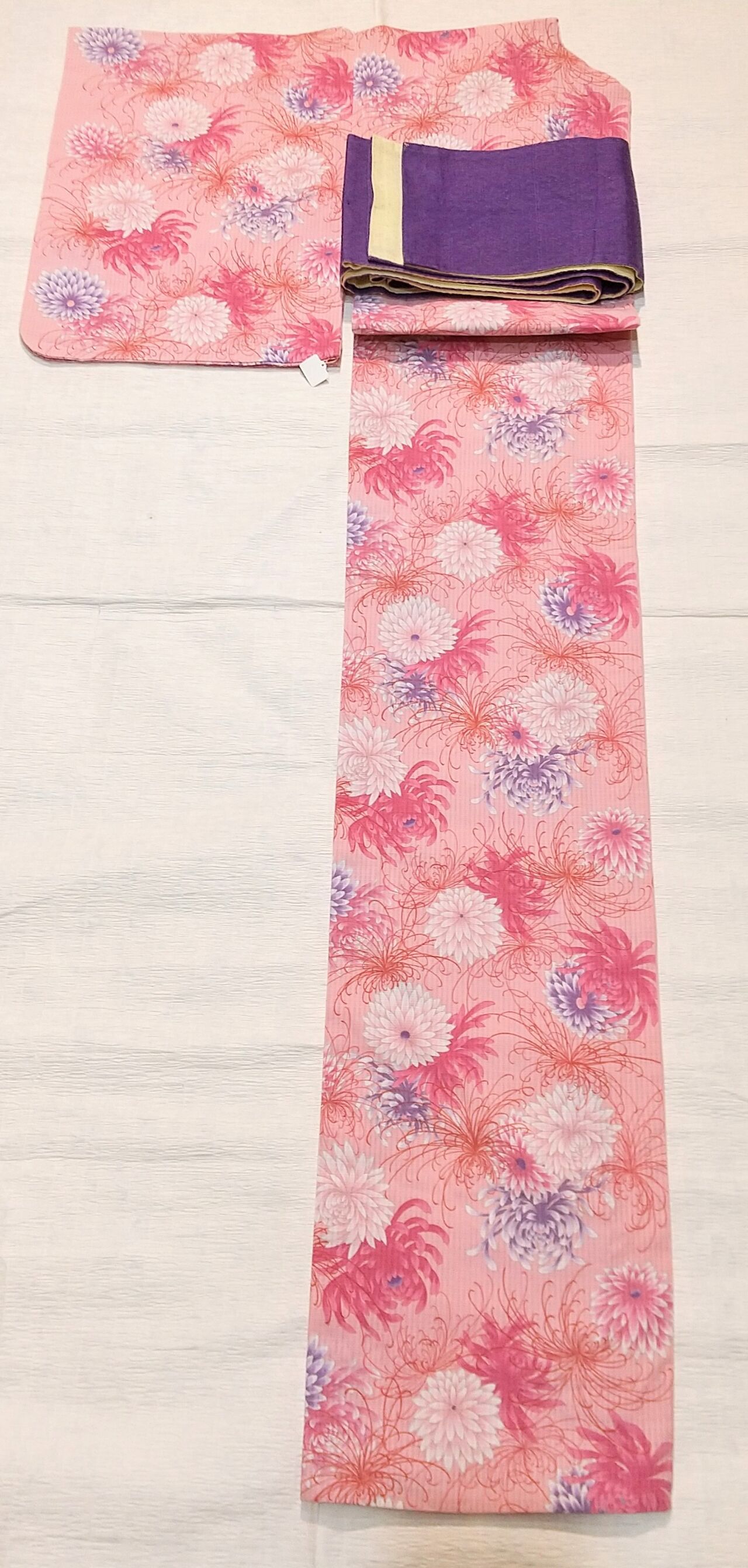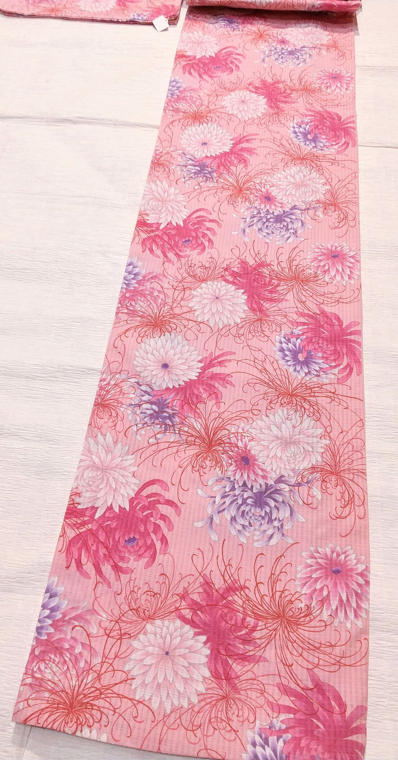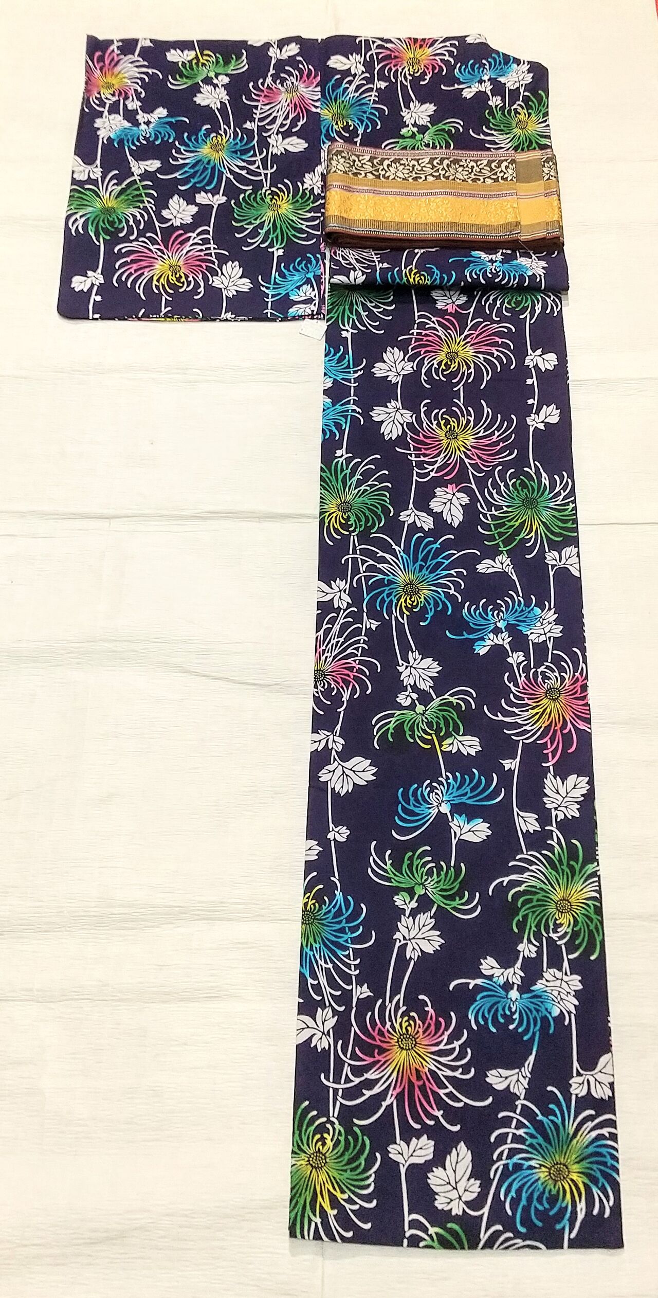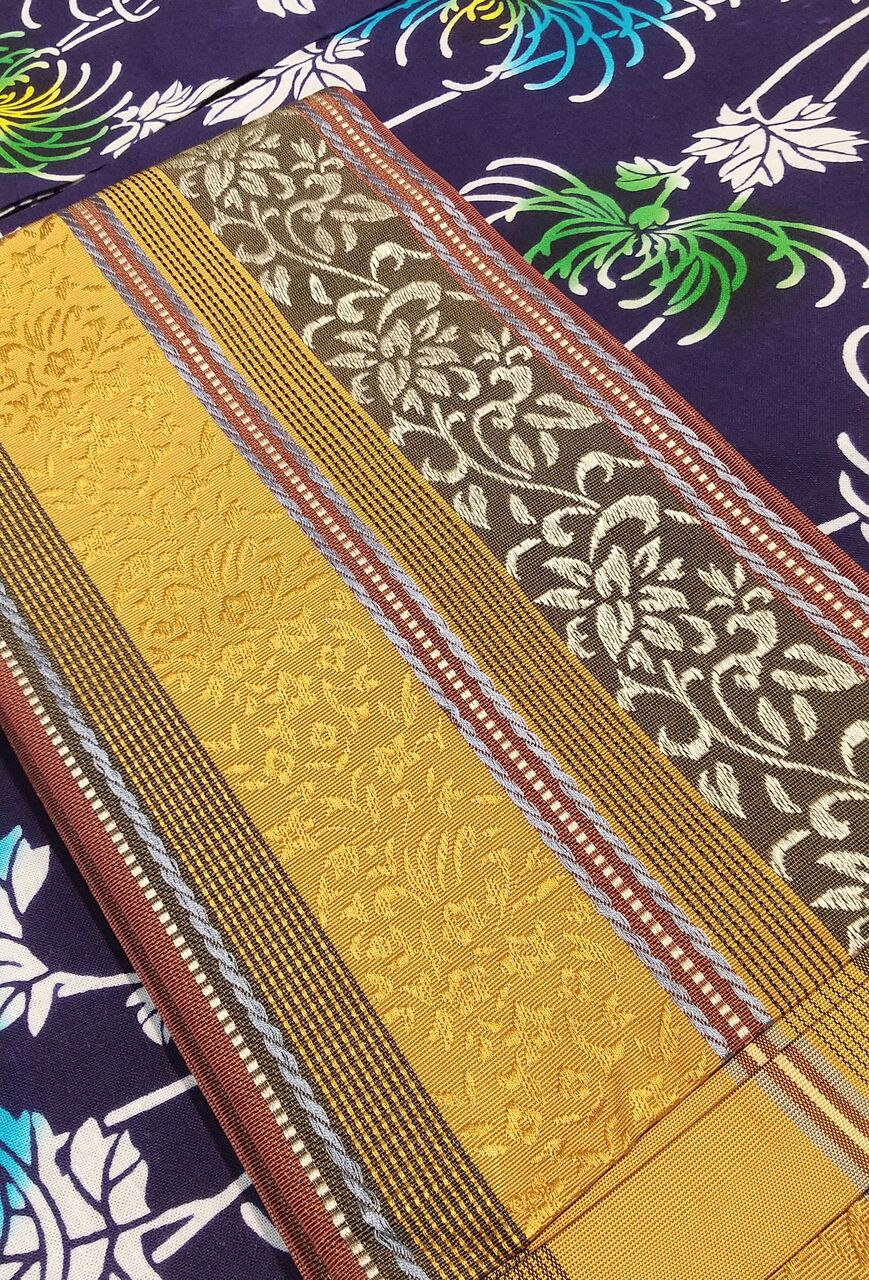 注染の浴衣 乱菊柄~博多織りの地紋が綺麗な秋色の半幅帯~です!