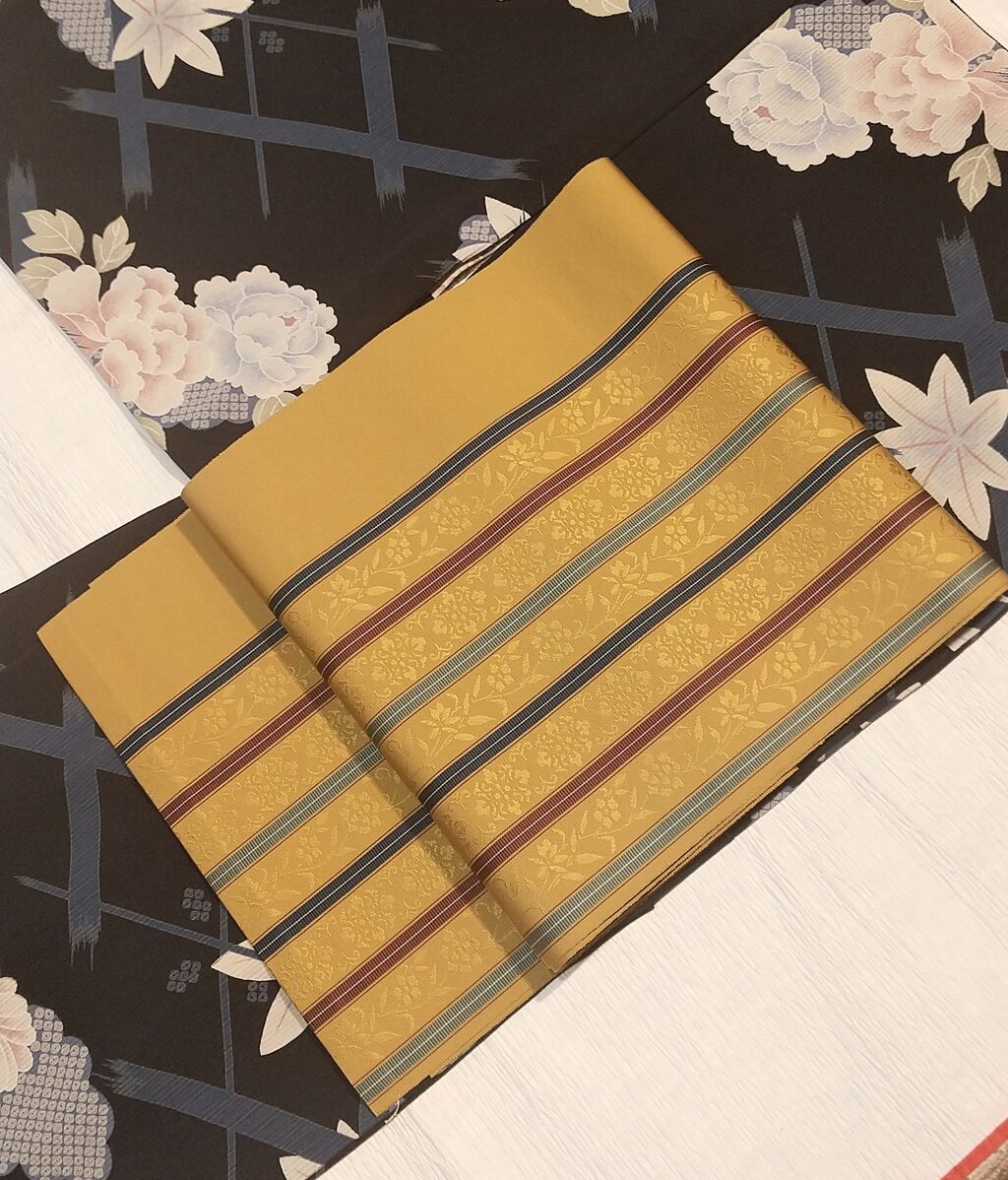 合わせたのは、地紋が綺麗な秋冬色の博多織りの半幅帯 リバーシブル です✨