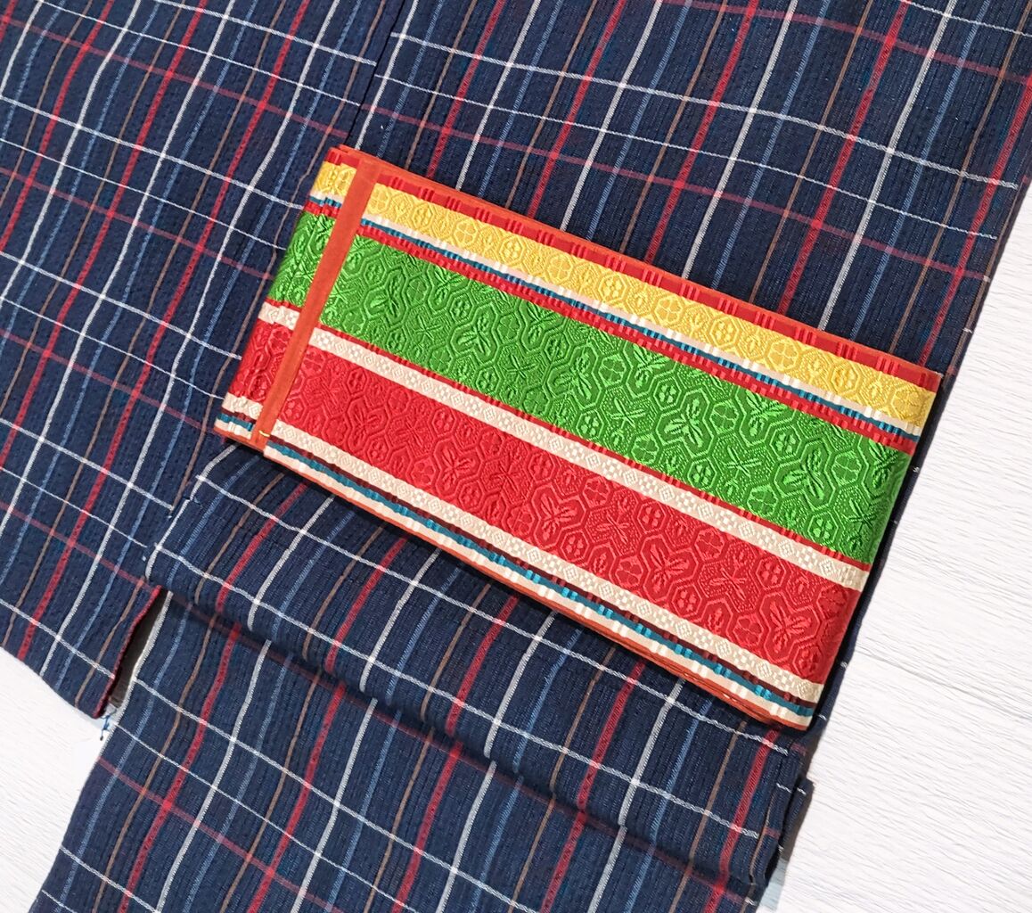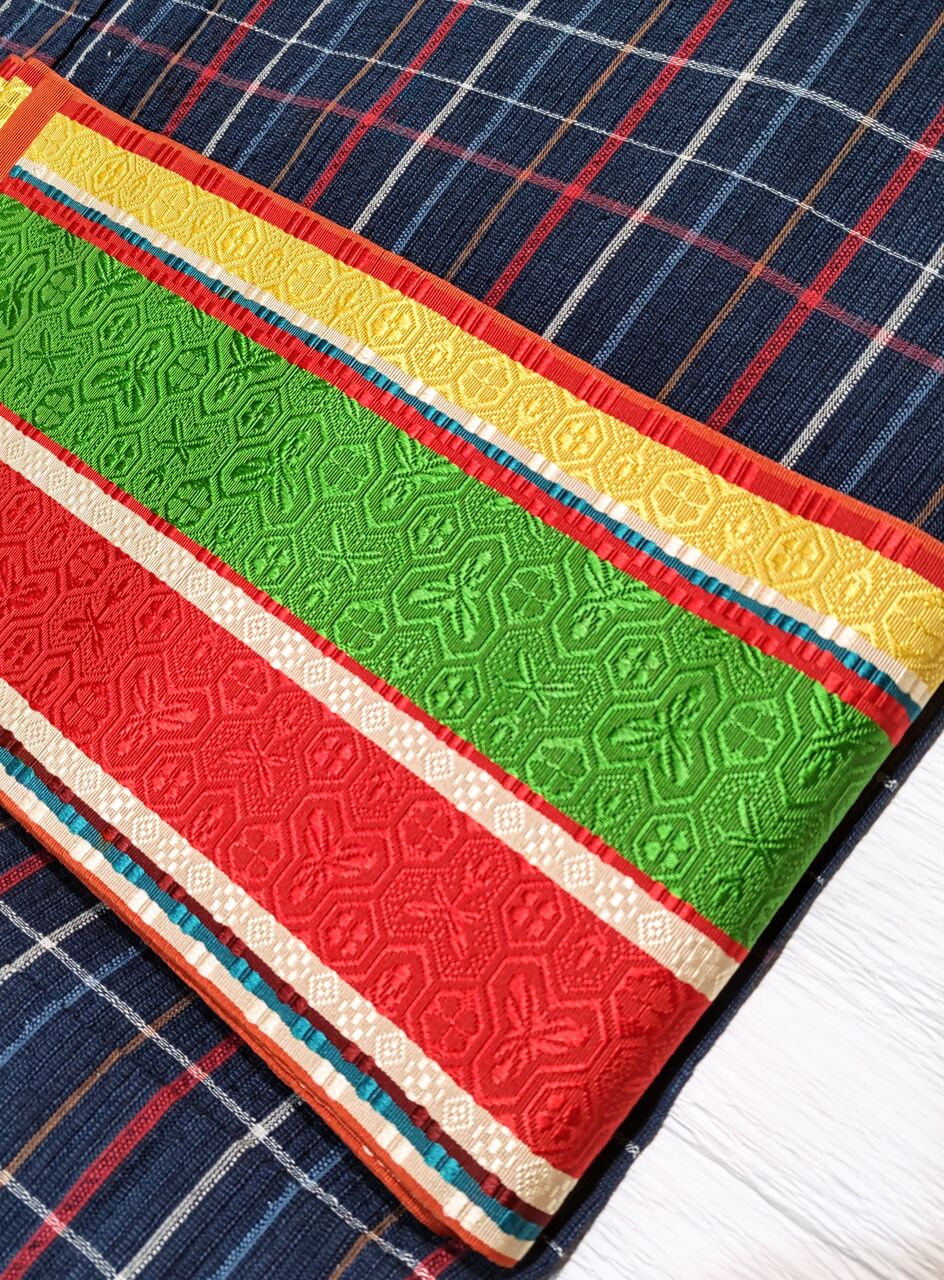 多色使いながら、ポップ過ぎない、大人な雰囲気の半幅帯をお探しの方にも◎