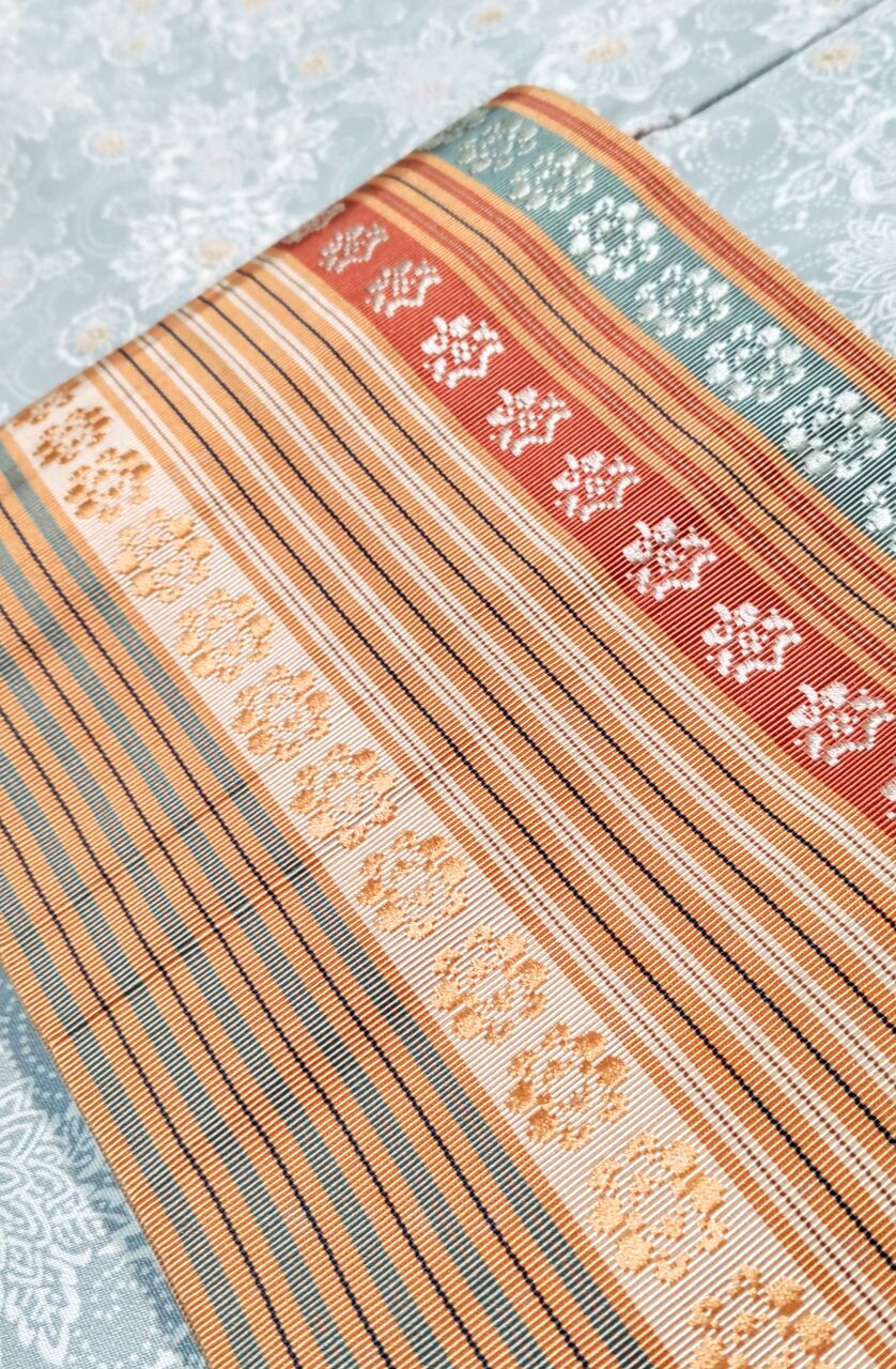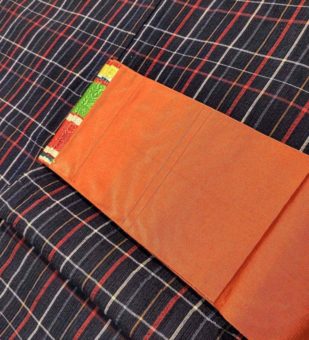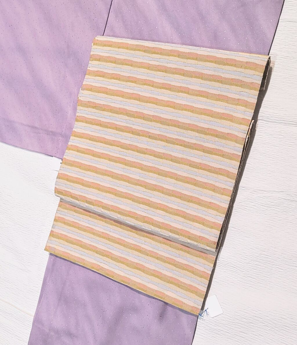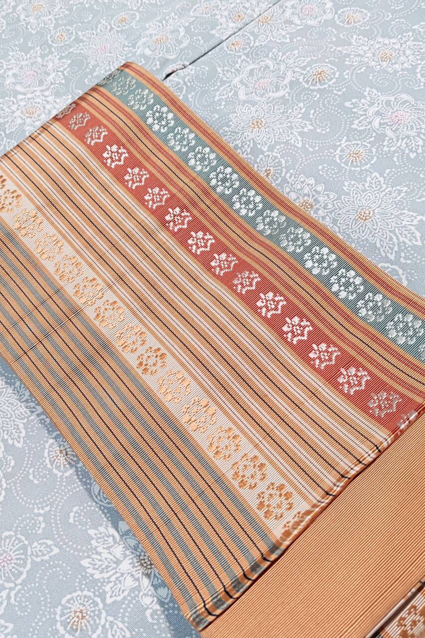 合わせたのは、淡いオレンジ色にボーダー柄の博多織りの半幅帯です✨