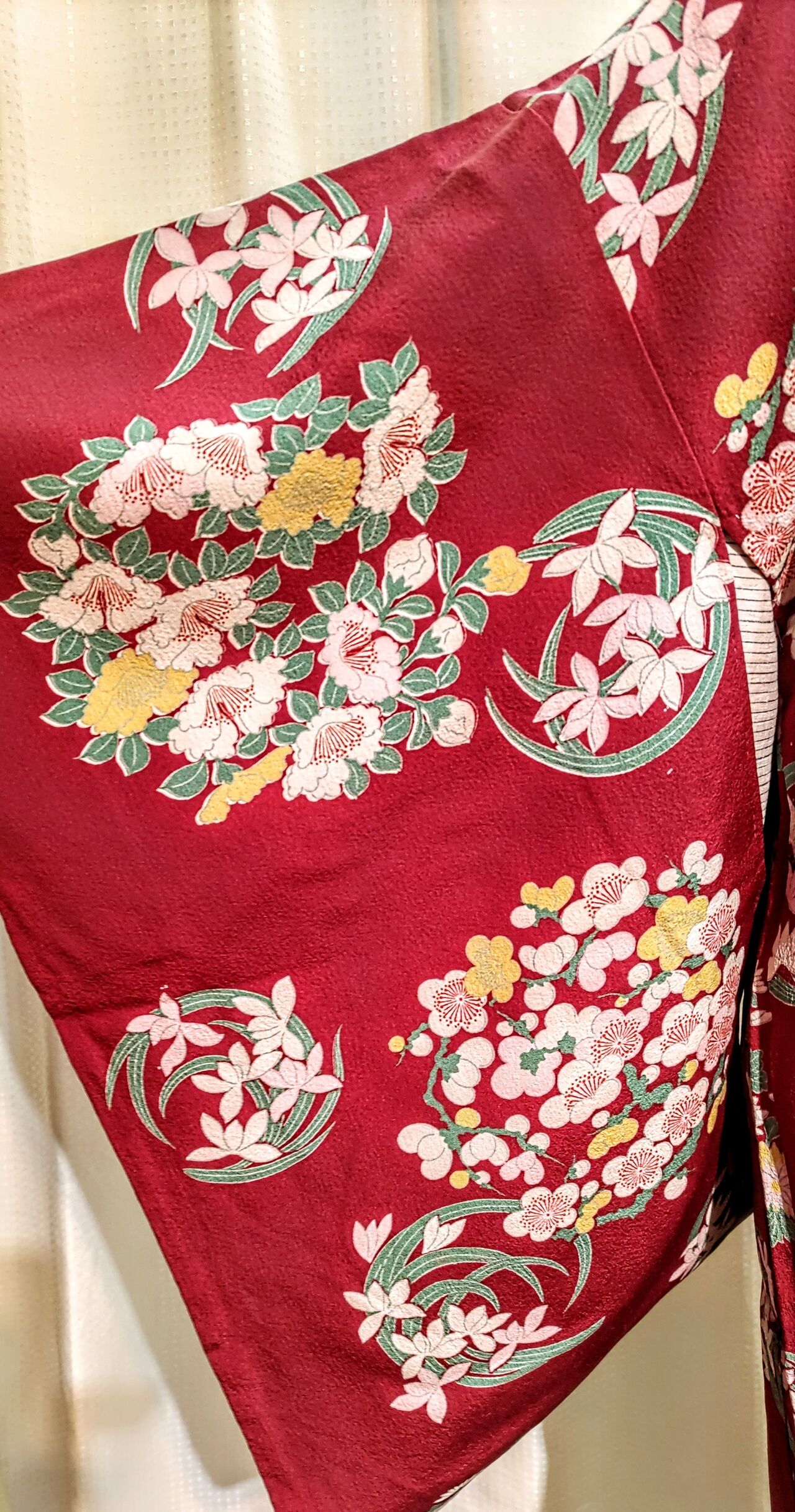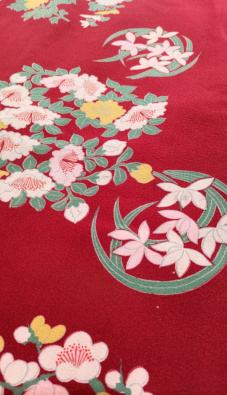 生地は地紋入り、縮緬地の膨れ織です。