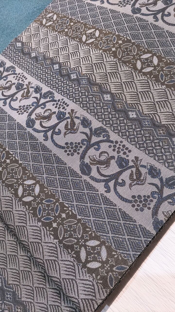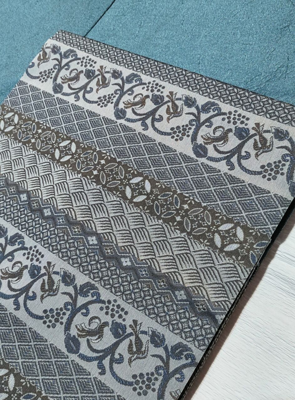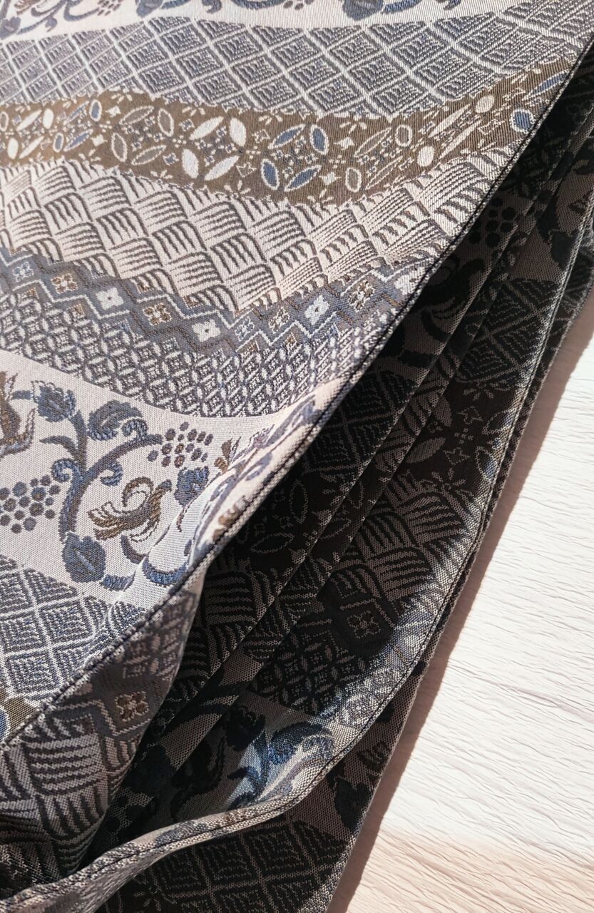 お色は淡いグレー地に、青みを感じるグレー(ブルーグレー)、沈んだ青色、渋い緑色を感じる薄い焦げ茶色など。