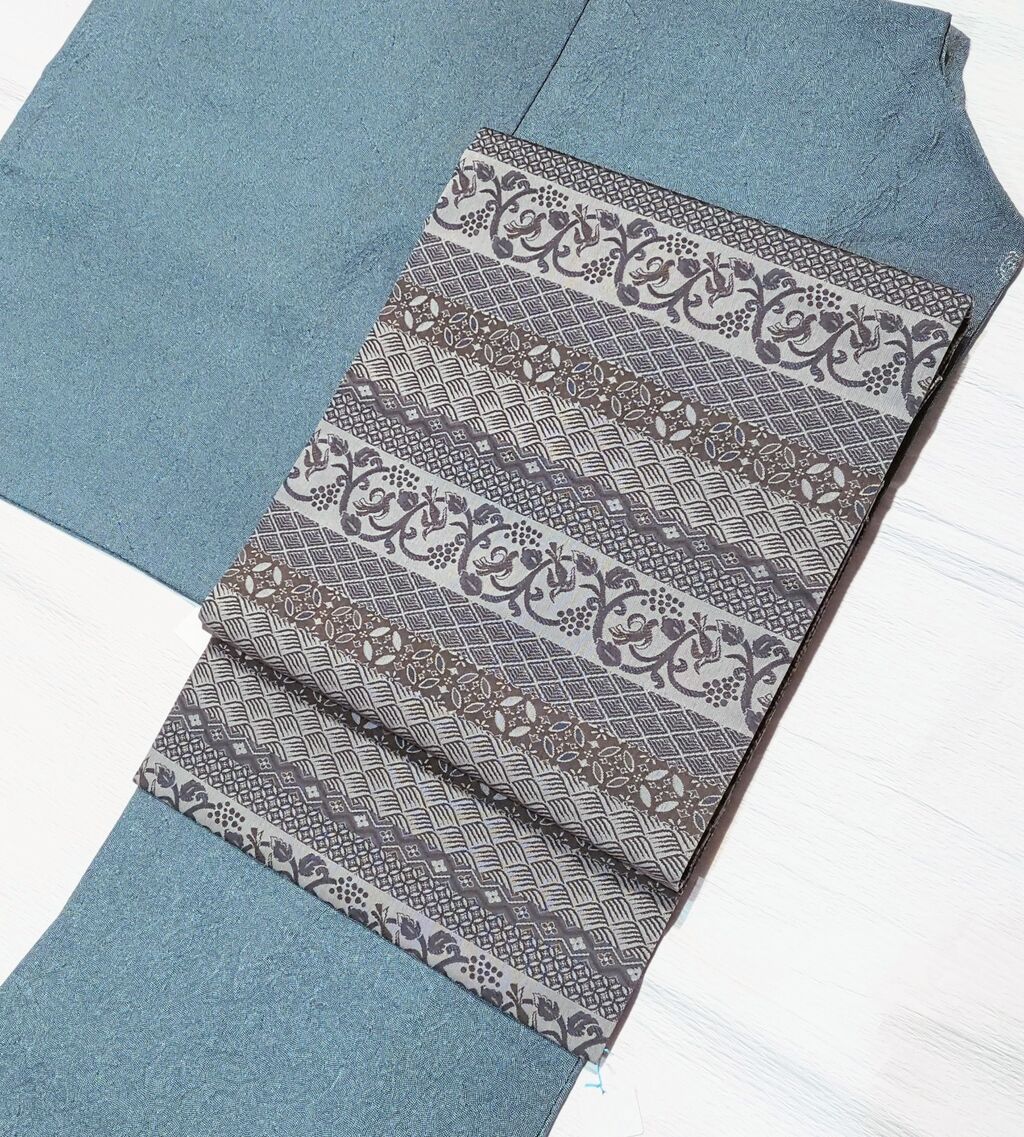 合わせたのは、ブルーグレー色の素敵な渋さ 上質な名古屋帯です✨