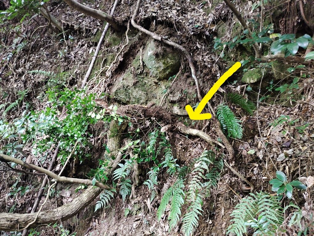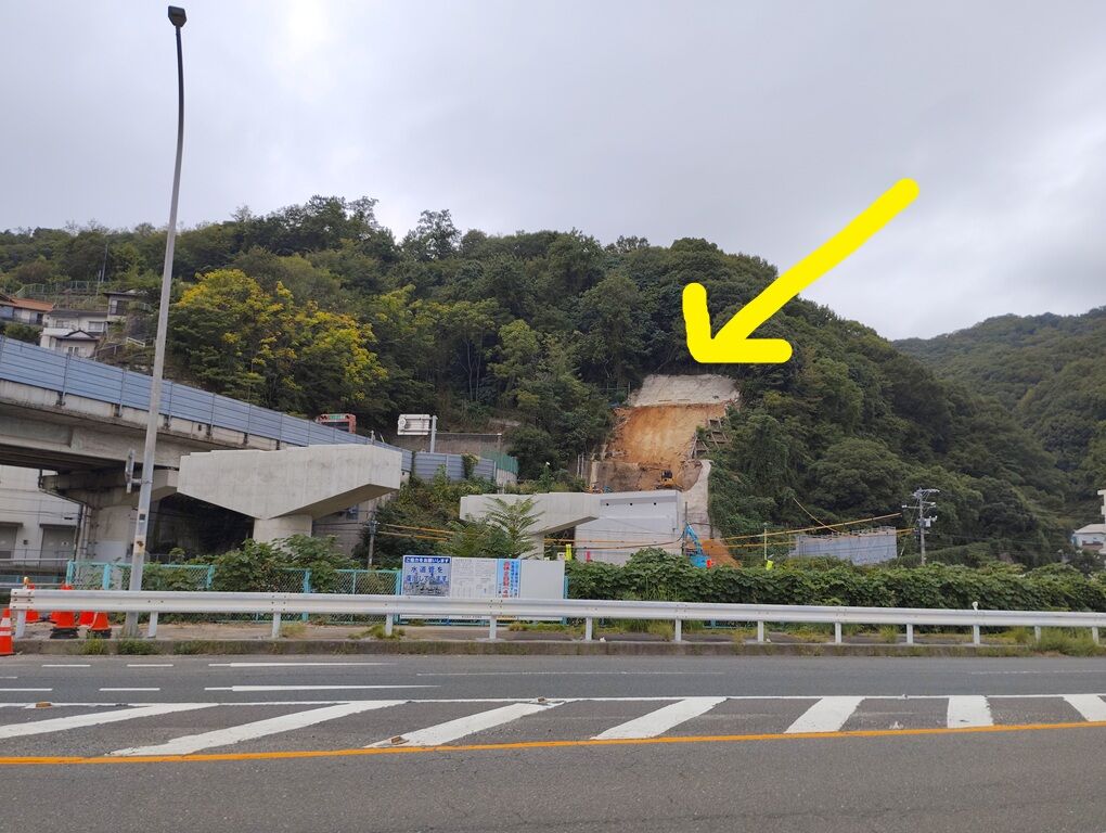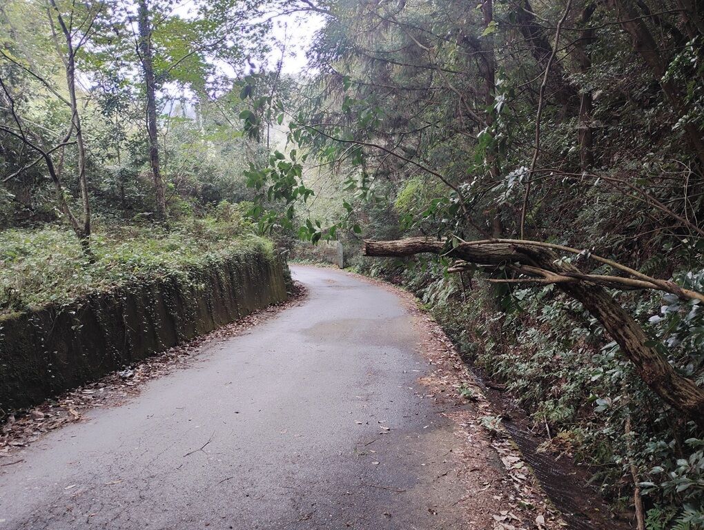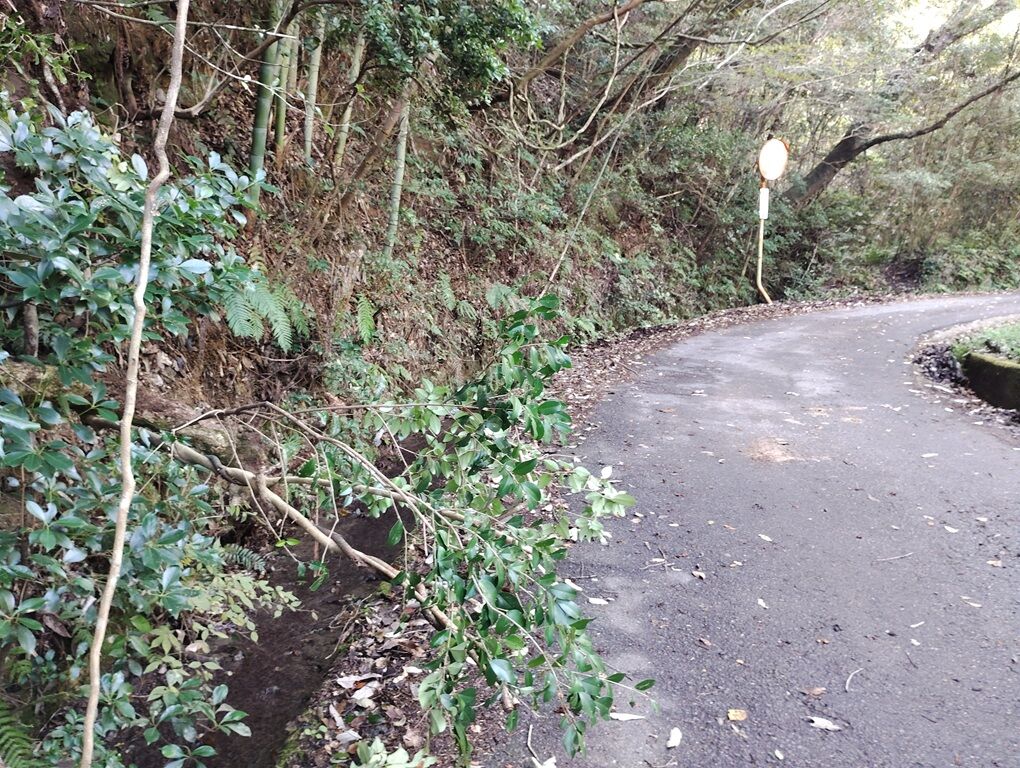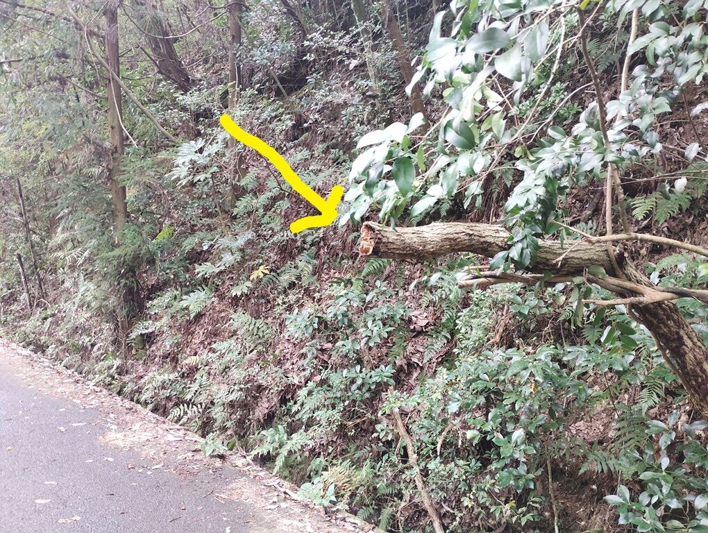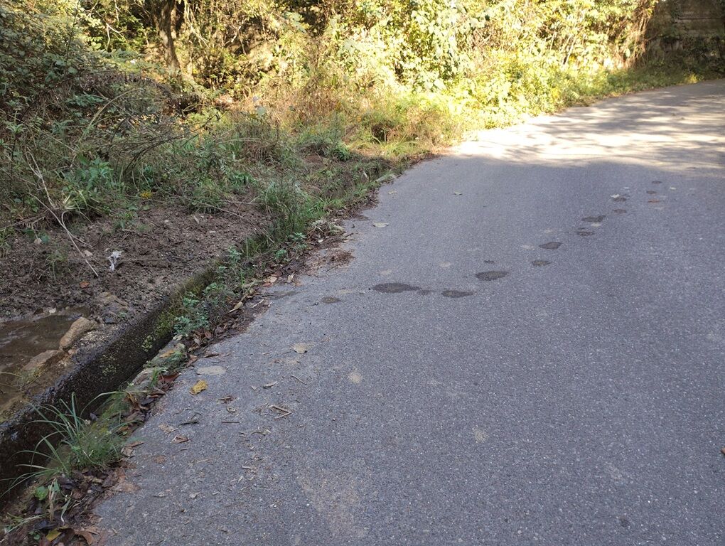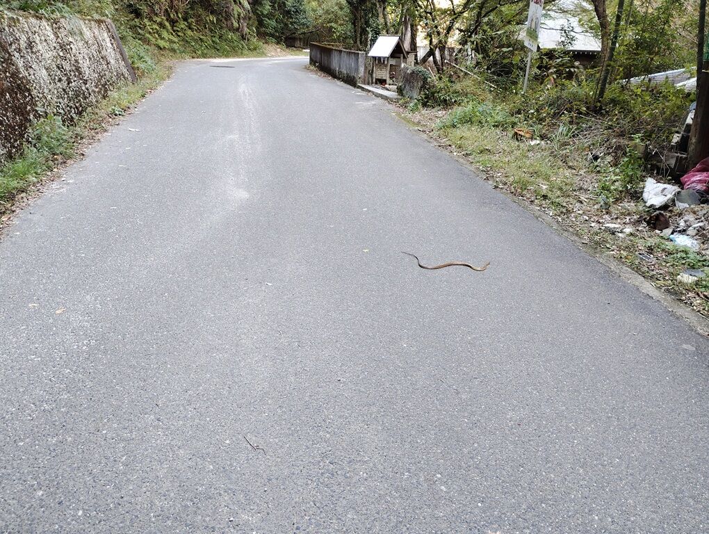 旧道ではイノシシが道を横切ってました左側は水が流れてる