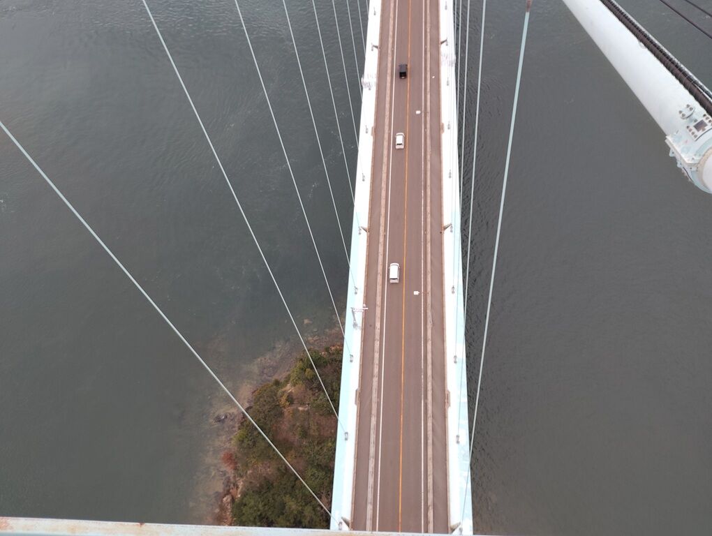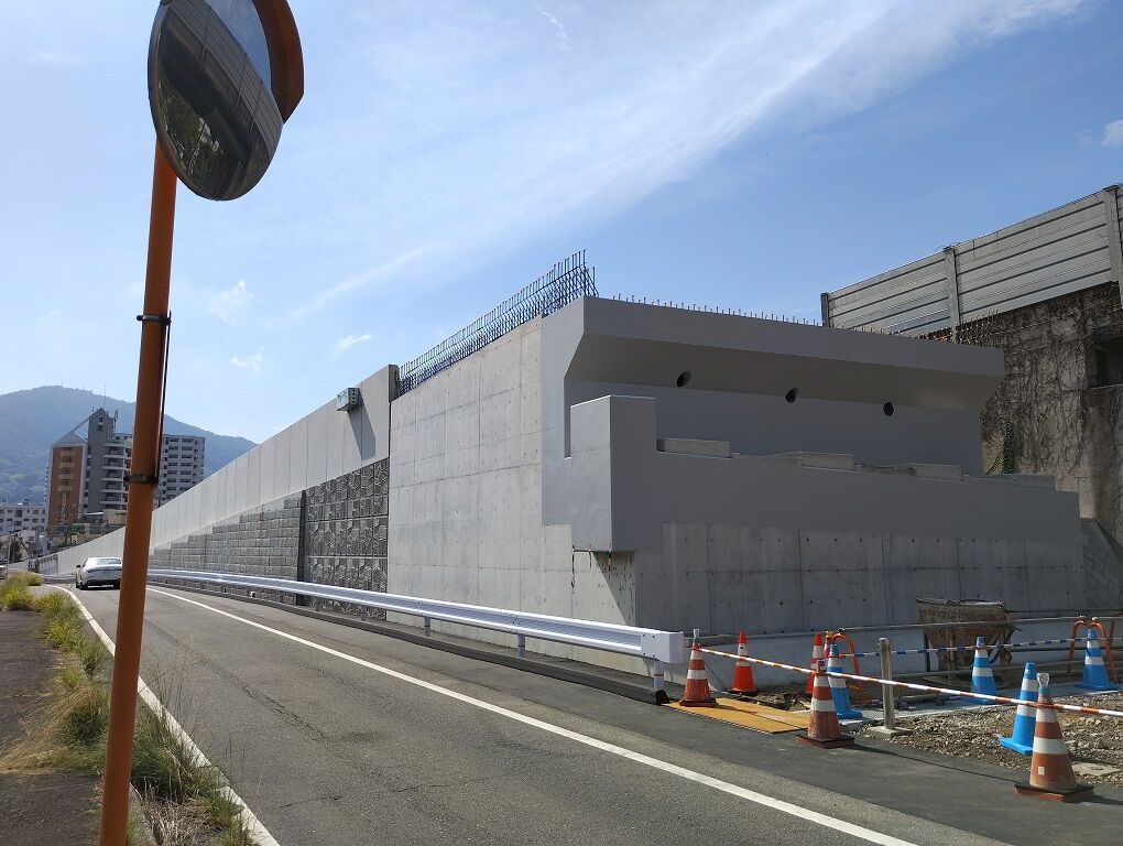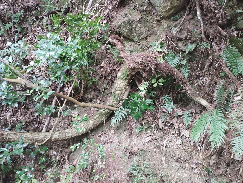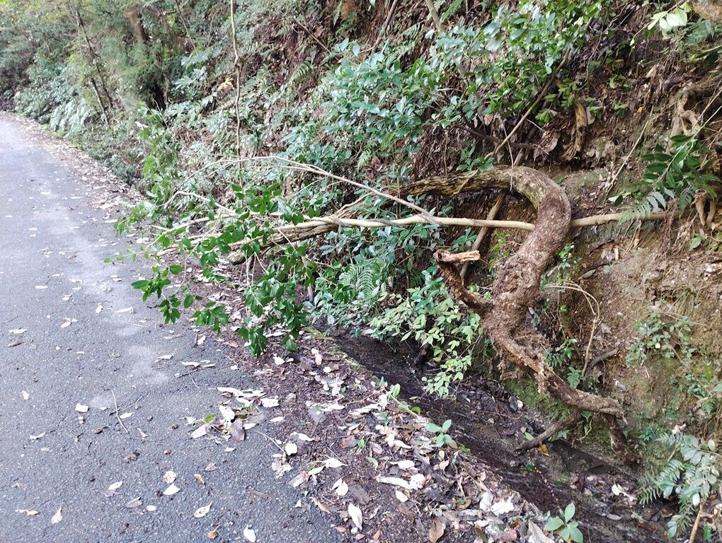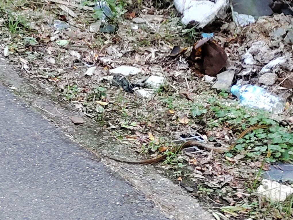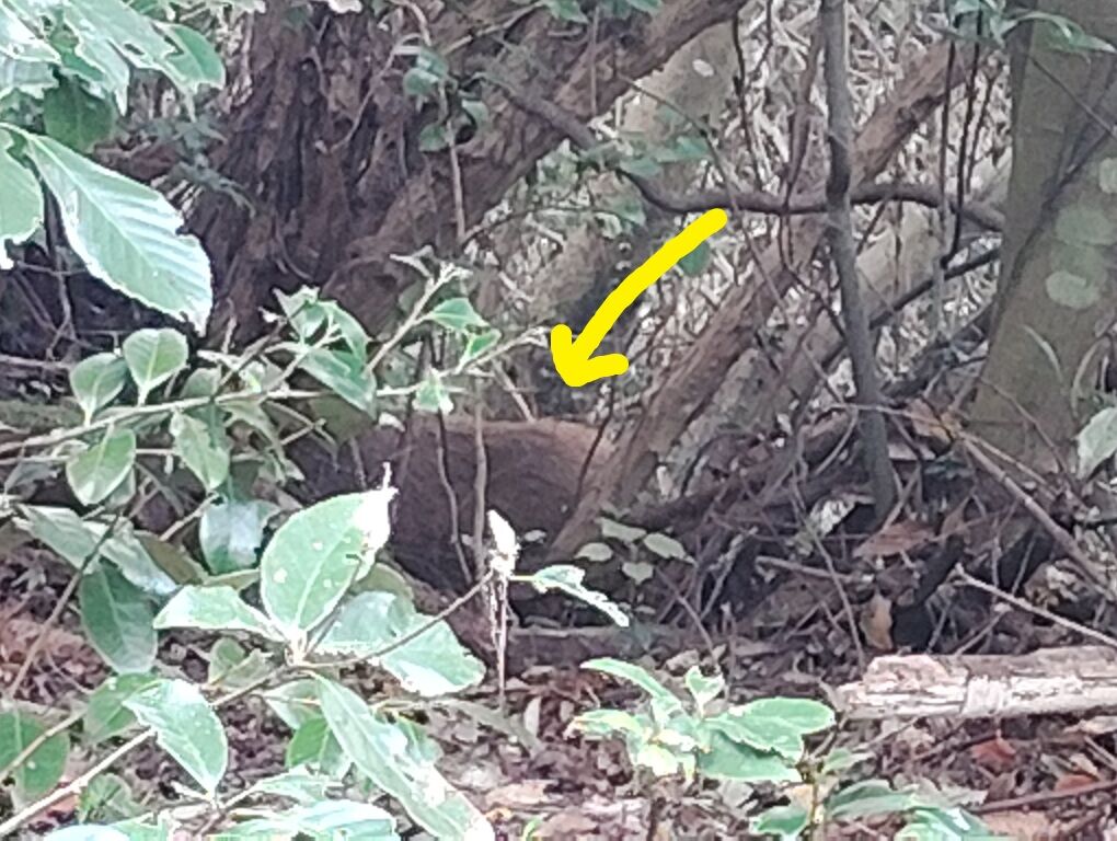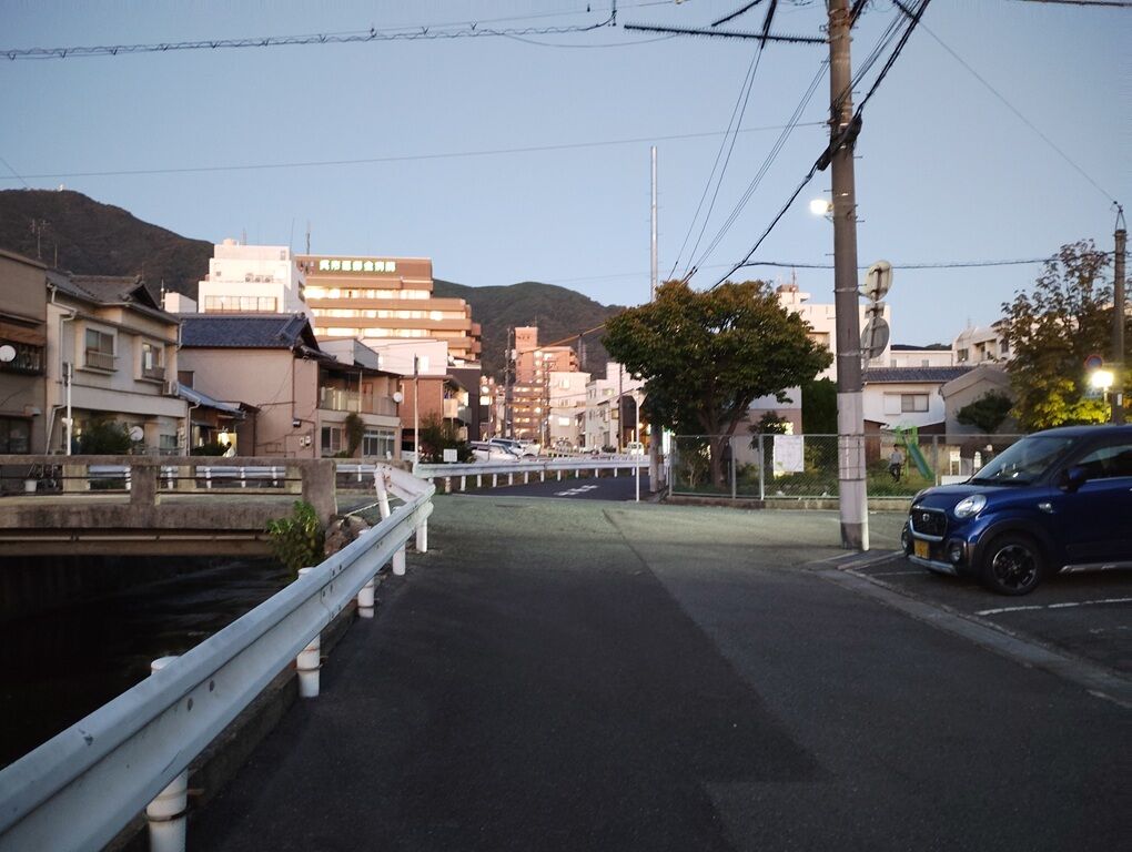 旧道ではイノシシが道を横切ってました左側は水が流れてる