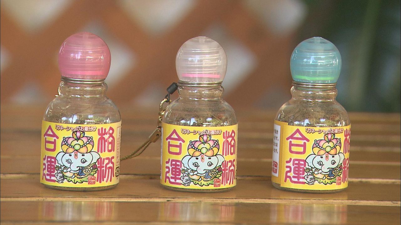 ゾウの「ふん」を使った「合格運粉(うんこ)」守り、岡山・池田動物園で販売2014年02月04日岡山の池田動物園(岡山市北区京山2、TEL 086-252-2131)が現在、「合格運粉(うんこ)」守りを販売している。園内で飼育しているインドゾウのメリー(メス、49歳)のふんを乾燥させ、殺菌・脱臭加工してボトル詰めしたもの。草食獣なので乾燥させたふんの見た目は植物繊維そのもの。1日に40キロは排出するので相当な量のお守りを作ることができるという。ラベルにはメリーをモチーフにしたインドのゾウの顔を持つ神様「ガネーシャ」のイラストを描き、「富をもたらす現世利益の神様」「合格の神様」としている。漢字の「八」が縁起の良い「末広がり」を意味することから、1個888円で販売。副園長の忠政智登士(ただまさちとし)さん(78)は「昨年11月から販売。お守り購入だけを目的に来園する方もいて、まずまずの人気」という。「インドではゾウは大切にされている動物。日本でも昔から動物のふんを畑の肥料として使い、命の循環の中の一つで有益なもの。受験や資格試験などさまざまなことにチャレンジする方に、これで運をつけてほしい」と話す。今後は通年、販売する。同園では7~8年前からレッサーパンダが、滑り止めの鋭い爪を持ち木から落ちないことから、毎年受験シーズンにレッサーパンダ舎横の企画展示室で「合格祈願パンダ君」人形の展示と「落ちないお守り」無料配布も行っており、今年も設置している。開園時間は9時30分~16時30分(4月~10月は17時まで)。11月21日~2月20日、5月21日~7月20日は水曜休園。https://okayama.keizai.biz/headline/133/