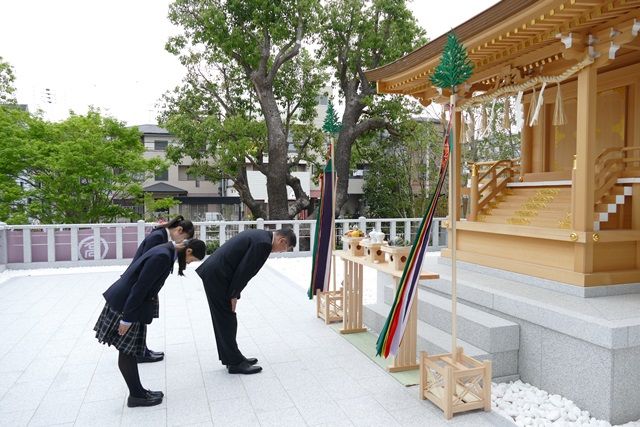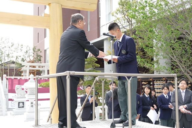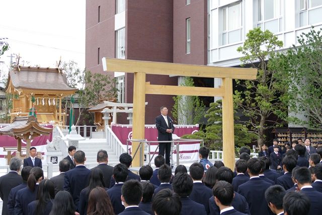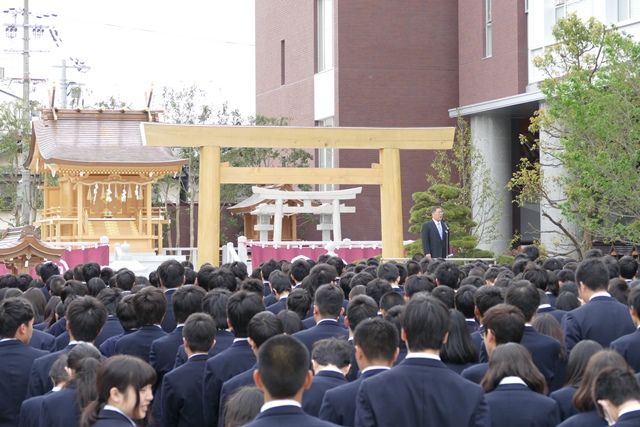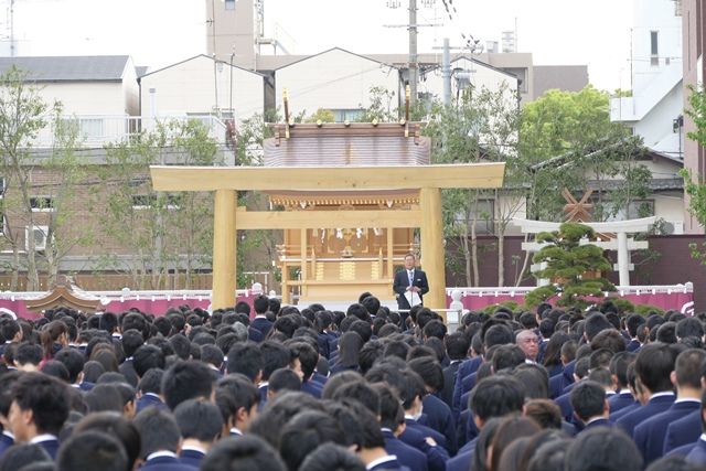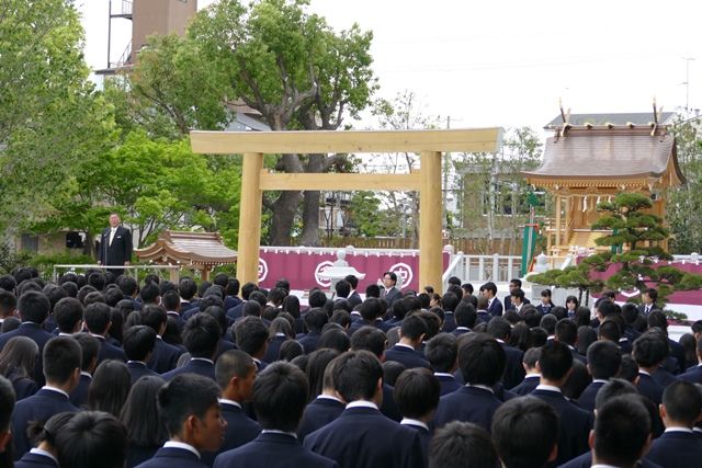 ・ 今日は6月1日、「一斉参拝」の日でした。生徒は「夏服に衣替え」、教職員は「クールビズ」です。今日をもって「ブログの終結宣言」をさせて頂きます。私のブログをお読みいただいた全ての皆様に心より感謝申し上げます。ほぼ毎日、グダグダと長い文章で、最後の方は自慢話みたいになり、さぞお読み辛かったと推察しています。しかし後世に「浪速改革」を臨場感を持って正確に伝える為に敢て意図して書きました。全てが真実です。これらのブログは神社基壇に作った「定礎室」に入れます。恐らく何も無ければ100年、200年開けることは無いでしょう。神社とはそういうものですから。例えば300年,500年後に誰かが此処を空けて取り出した時の事を想像してロマンをかきたてています。このブログでこの時代の世相や一つの私立学校の日々の動きを通して教育問題の一端が未来の人に伝われば嬉しい。