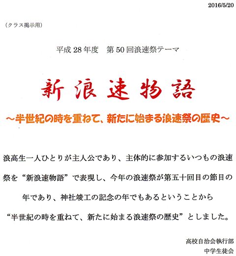 ・ それでは皆様、長い間有難うございました。今後とも学校法人浪速学院浪速高等学校・中学校を宜しくご支援下さりますようお願い致します。