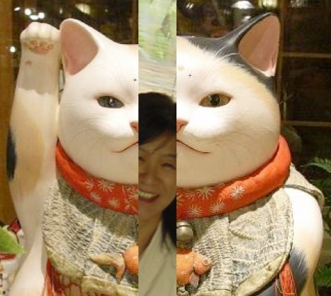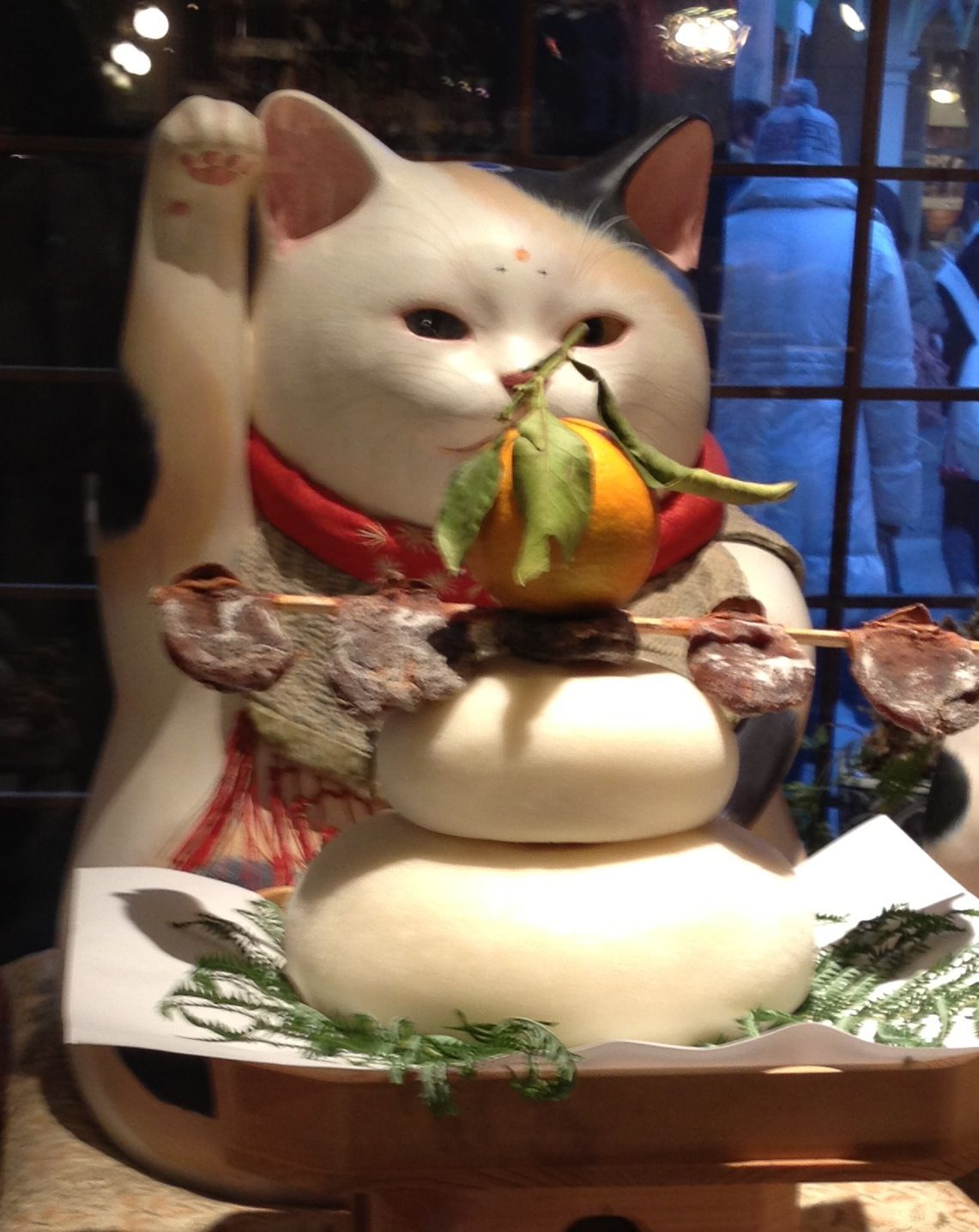 伊勢のおかげ横町にいる猫相のいい私の大のお気に入り猫です。有名ネコ作家「もりわじん」さんの作品です。