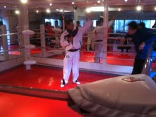 午前中がルールやレフェリー・ジャッジの講義、実際に試合を見ながらポイントの付け方の確認、