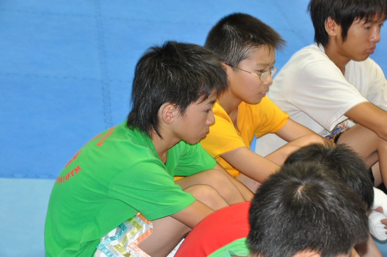 いつものように神妙な面持ちで会長のお話を聞くジュニア選手達。