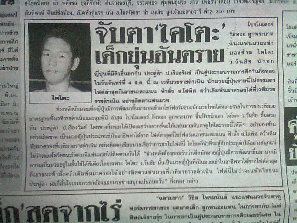 なお、福田の8/4興行出場に関して、ムエタイ専門誌「ムエ・サヤーム」が特集記事を掲載。「日本から来たデンジャラス・ボーイだ」とコメントされている。