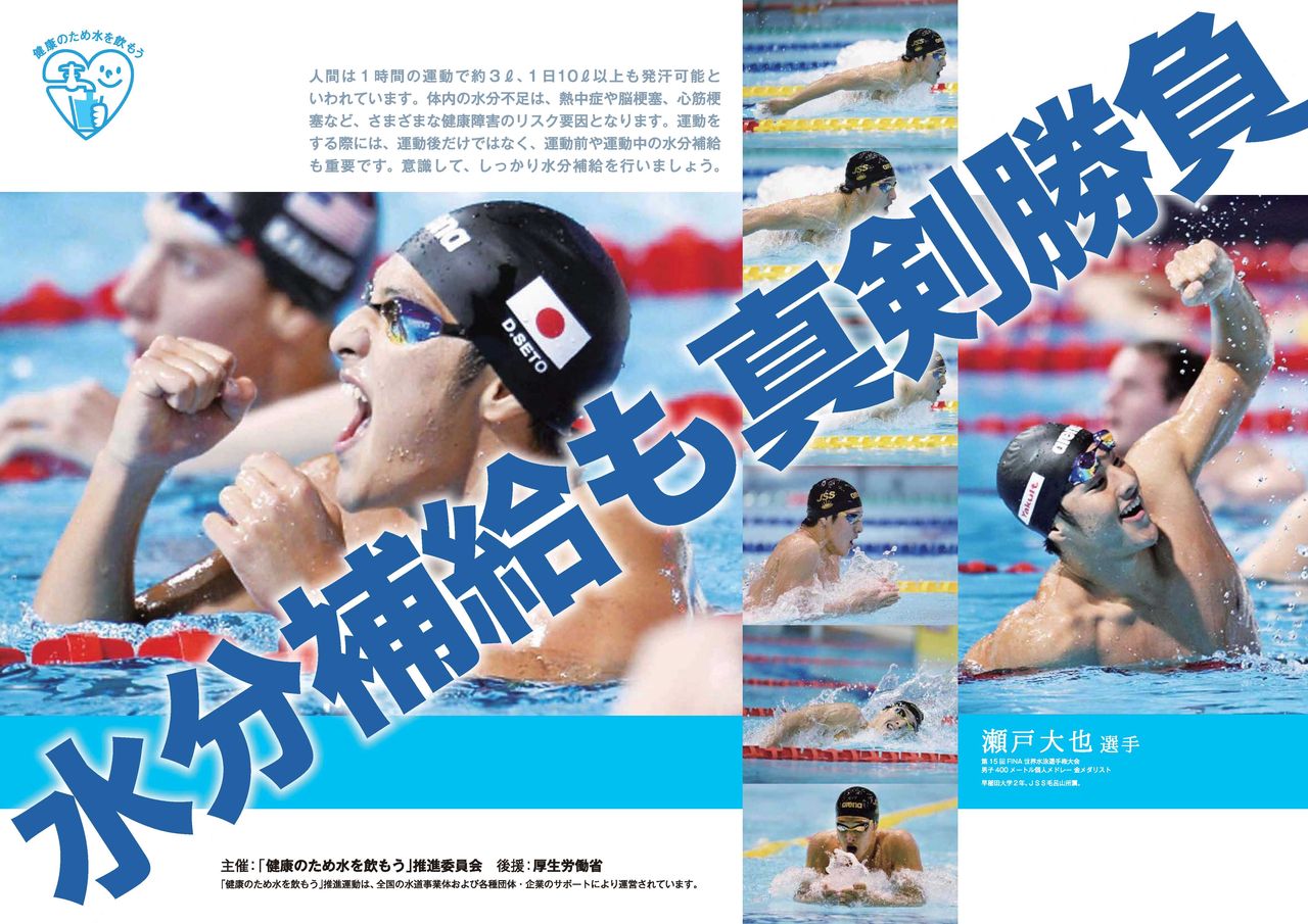 厚生労働省が音頭をとって、「健康のために水を飲もう」推進委員会なる組織を立ち上げ、要はこれからの時期水分補給を行ないましょう、という趣旨の活動。