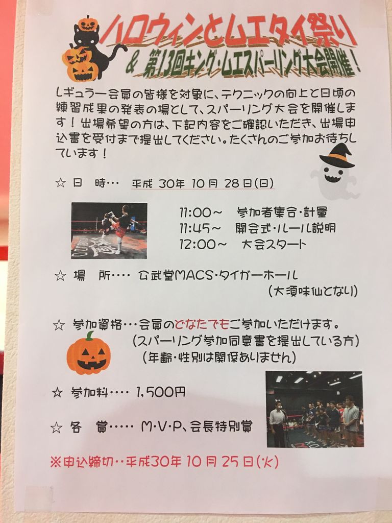 日曜日28日に迫った、「第13回キング・ムエスパーリング大会&ハロウィン祭り」🎃