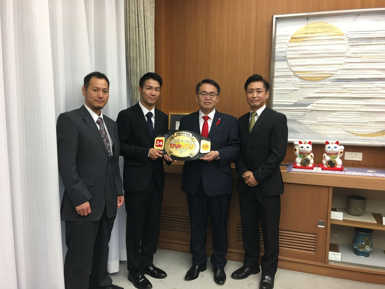 今日4日、大村秀章愛知県知事へその勝利報告を行いました。