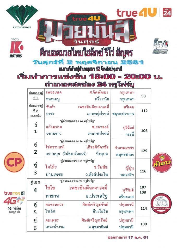 ※11 月 2 日(金)「True 4U スック ムエマンワンスック 」(ランシットスタジアム)