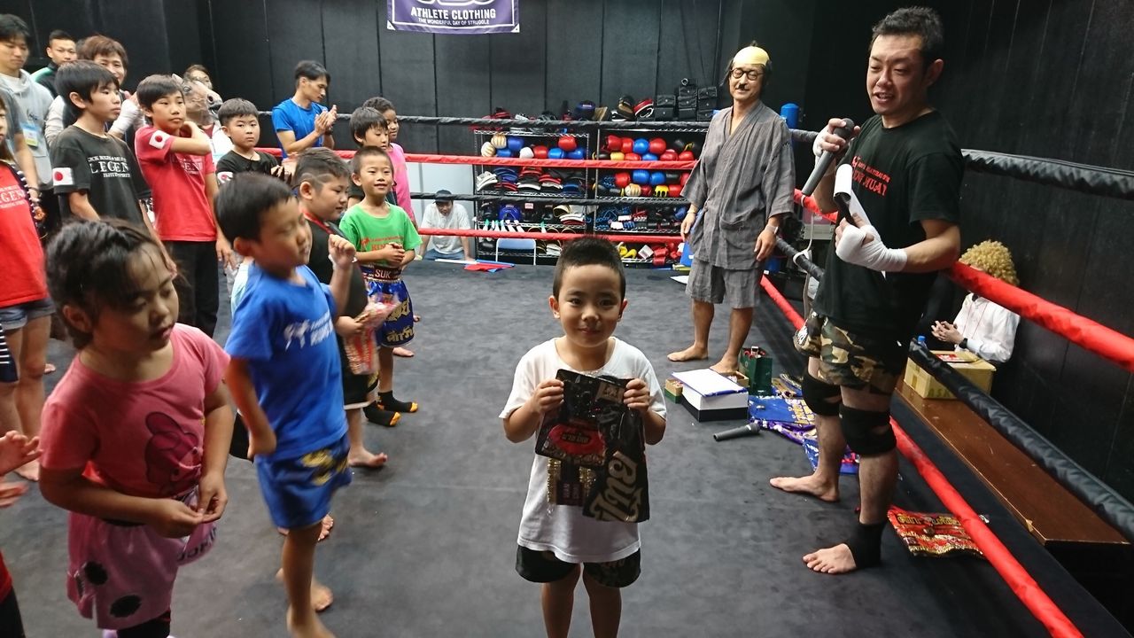 その他、体重20kgくらいの小学1年生からベテラン選手まで、初心者から上級者まで、しかも今回は友好ジムであるLEGENDジム、キック塾、BLITZジムの皆様にも出場していただき、ちょっと緊張感もありつつ楽しくも真面目にスパーができました。