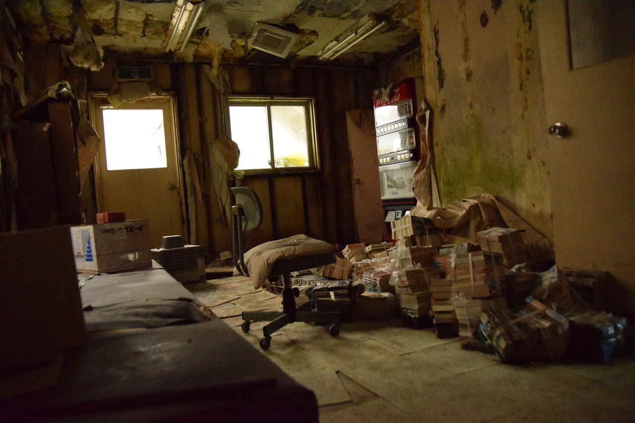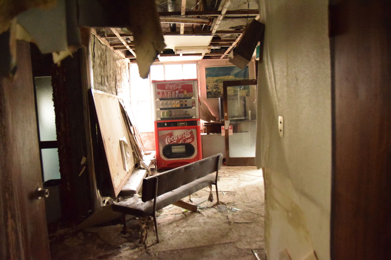 入ってすぐに自動販売機。コカコーラ。朽ちてなくてまだ色が鮮やかです。