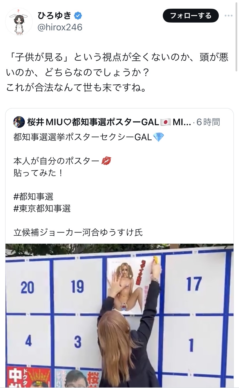 【速報】都知事選候補者のポスターめぐり 都の迷惑防止条例で警告