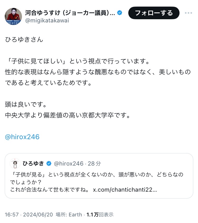子供に有害って観点やとひろゆきの方が遥かに害悪やろ