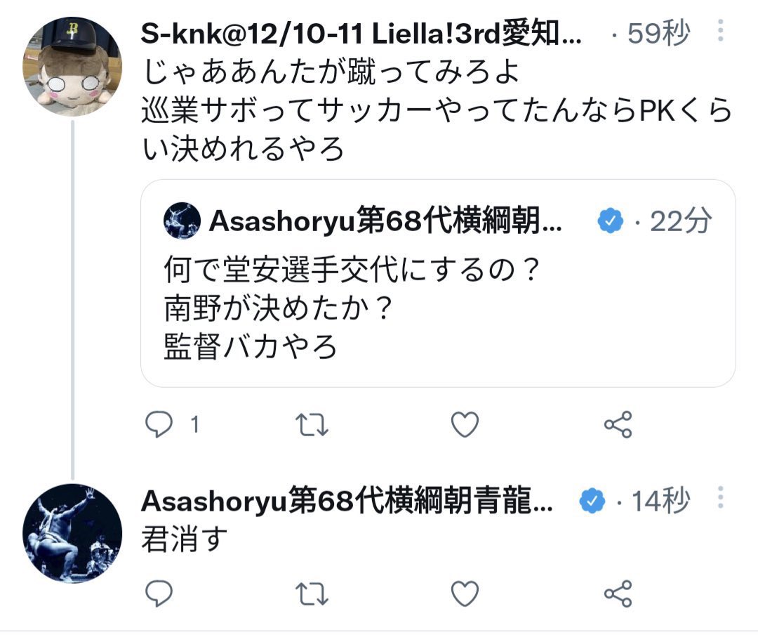 朝青龍に対するウザ絡みに対する、アホとか消すとかの返しだからね