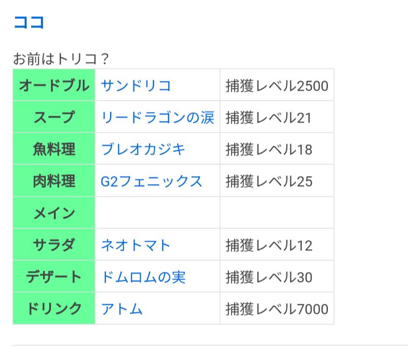 ココの適合食材草