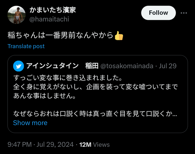 稲田は「すっごい変な事に巻き込まれました」とXに投稿し、一連の件について否定していた。