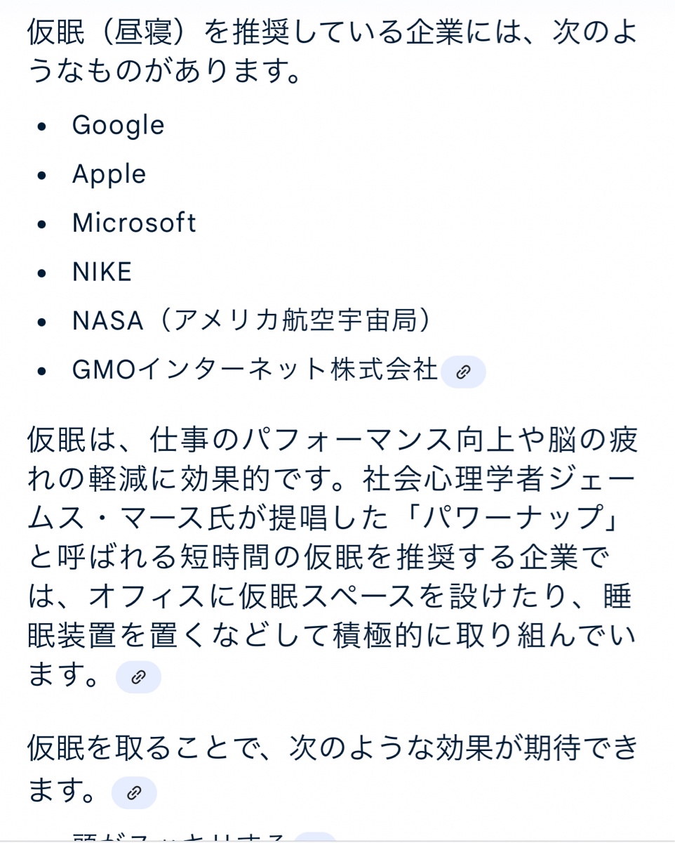 既に書いてる人もいたけど、15〜20分の昼寝はその後の作業効率を高めるって科学的データがあるんだよな