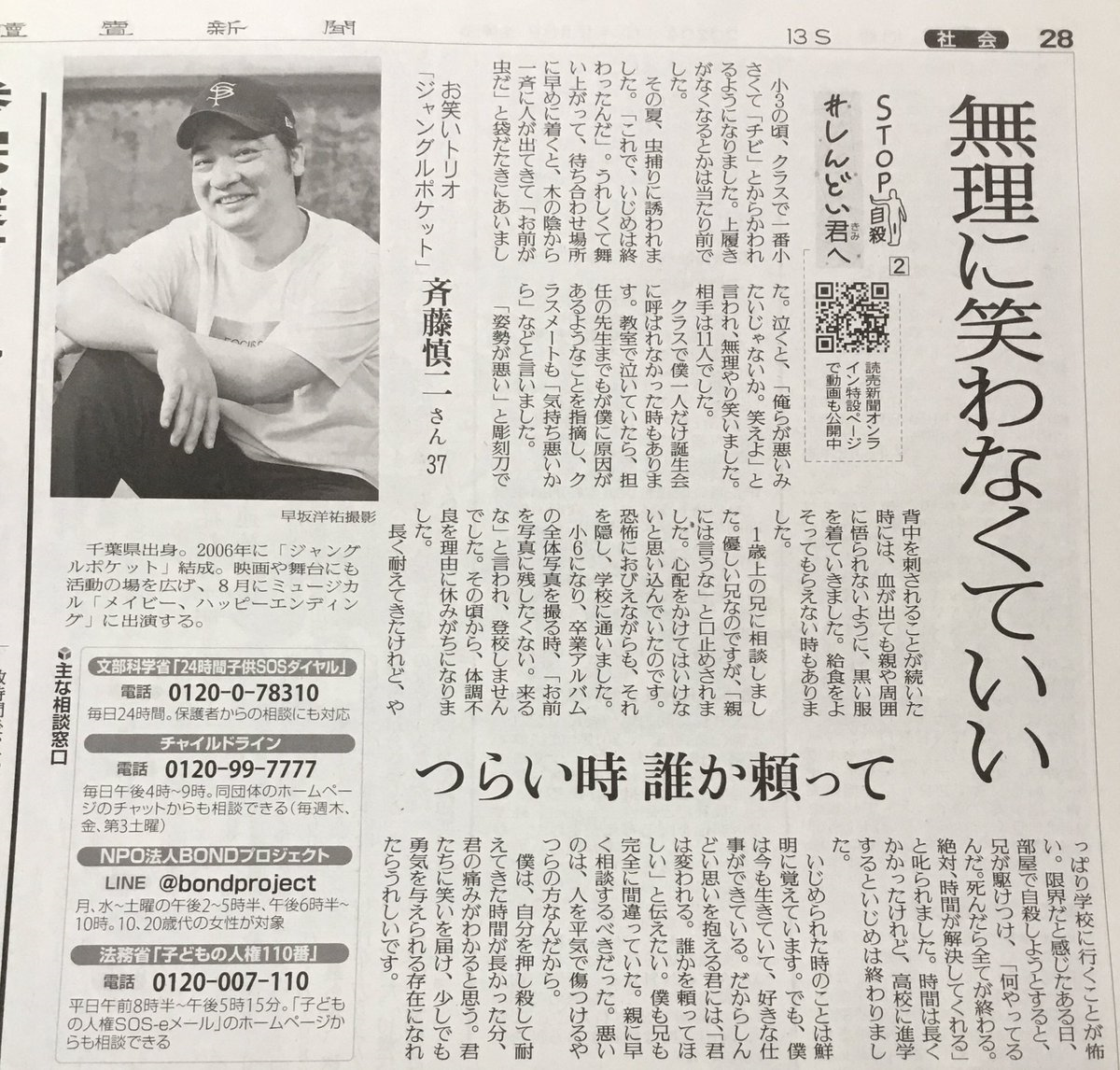 「#しんどい 君へ」ジャングルポケット 斉藤慎二さんからメッセージ : 読売新聞オンライン
