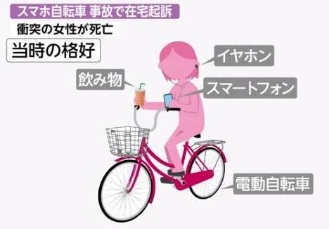 【悲報】左耳にイヤホンを、左手にスマホ、右手に飲み物 自転車スマホで女性死なせた大学生、書類送検へ