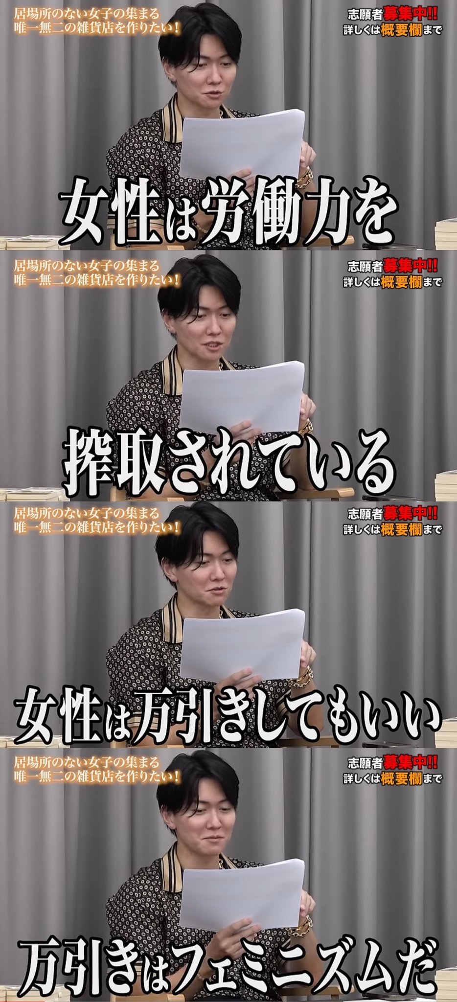 男性を敵視するような発言を続ける志願者ですが、「わざと話題になるために極端なことを言っている、やっている」とのこと。