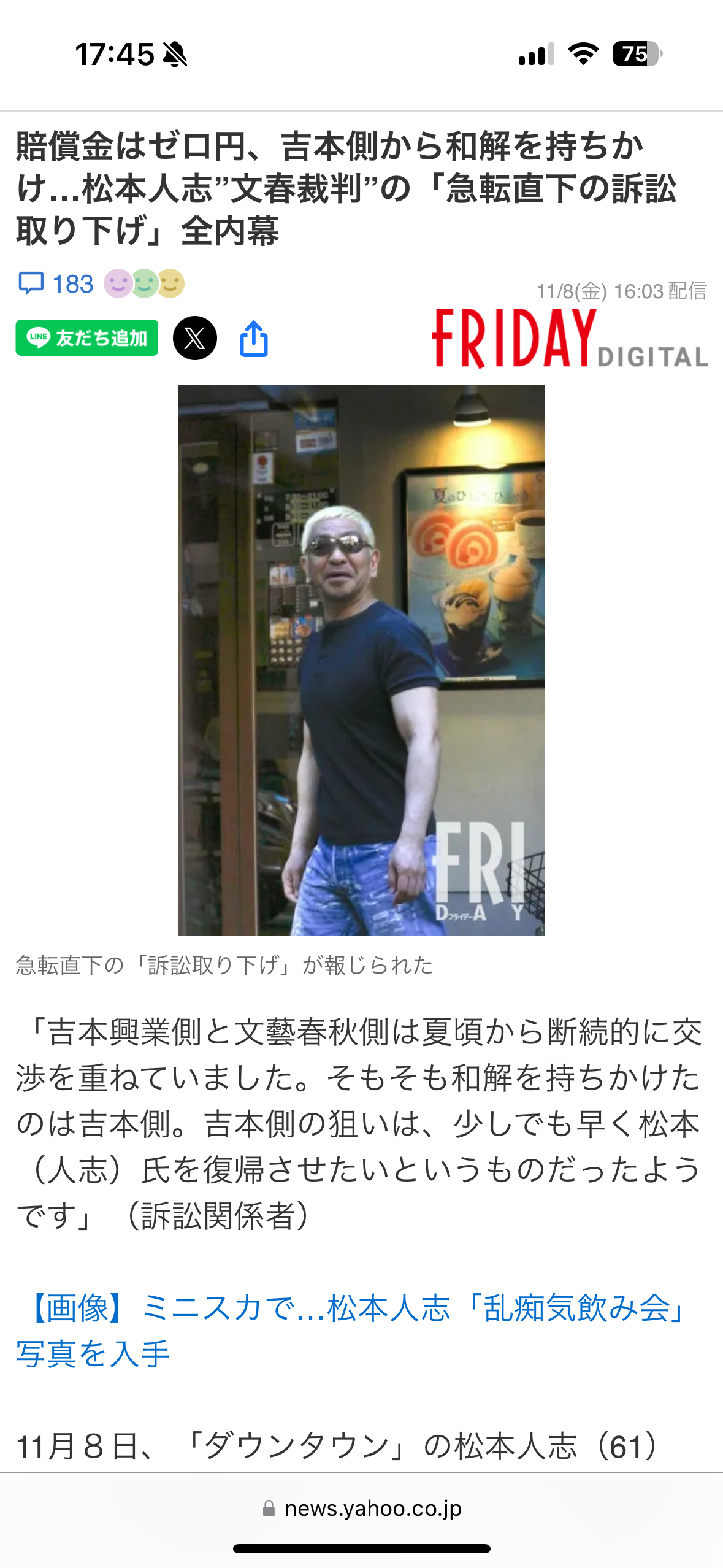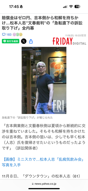 【速報】松本人志さん、文春への訴え取り下げへwwwwwwww