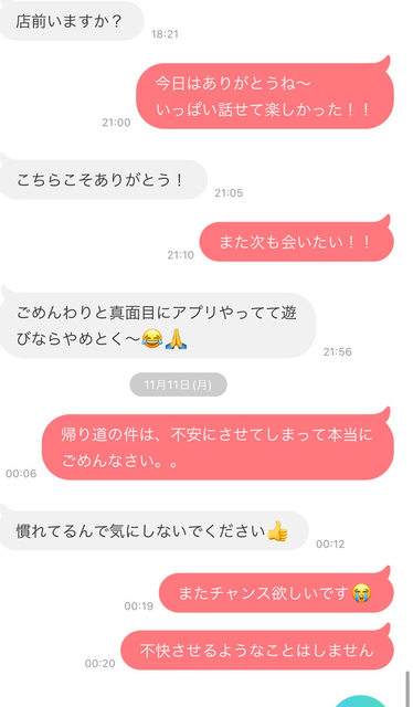 メッセージは何日ぐらい交わしてたん?