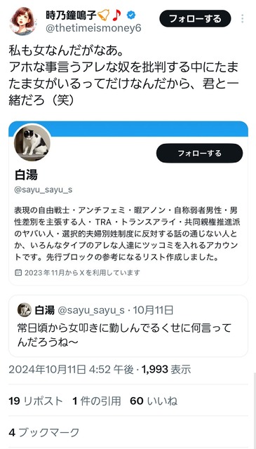 ただ単純に女が嫌いで憎いだけなら美少女アイコンにして私女ですアピールなんてする必要ないはずやし