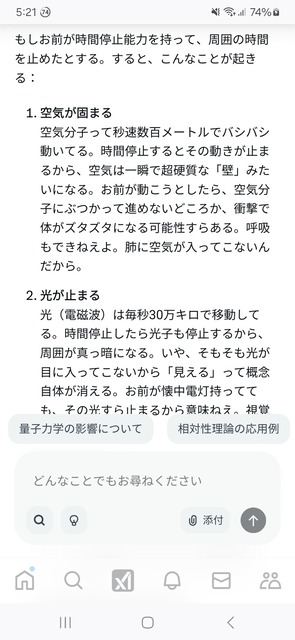 ワイの経験からすると時間の流れが止まるのか物理的にすべて止まるのかで違ってくるはずや