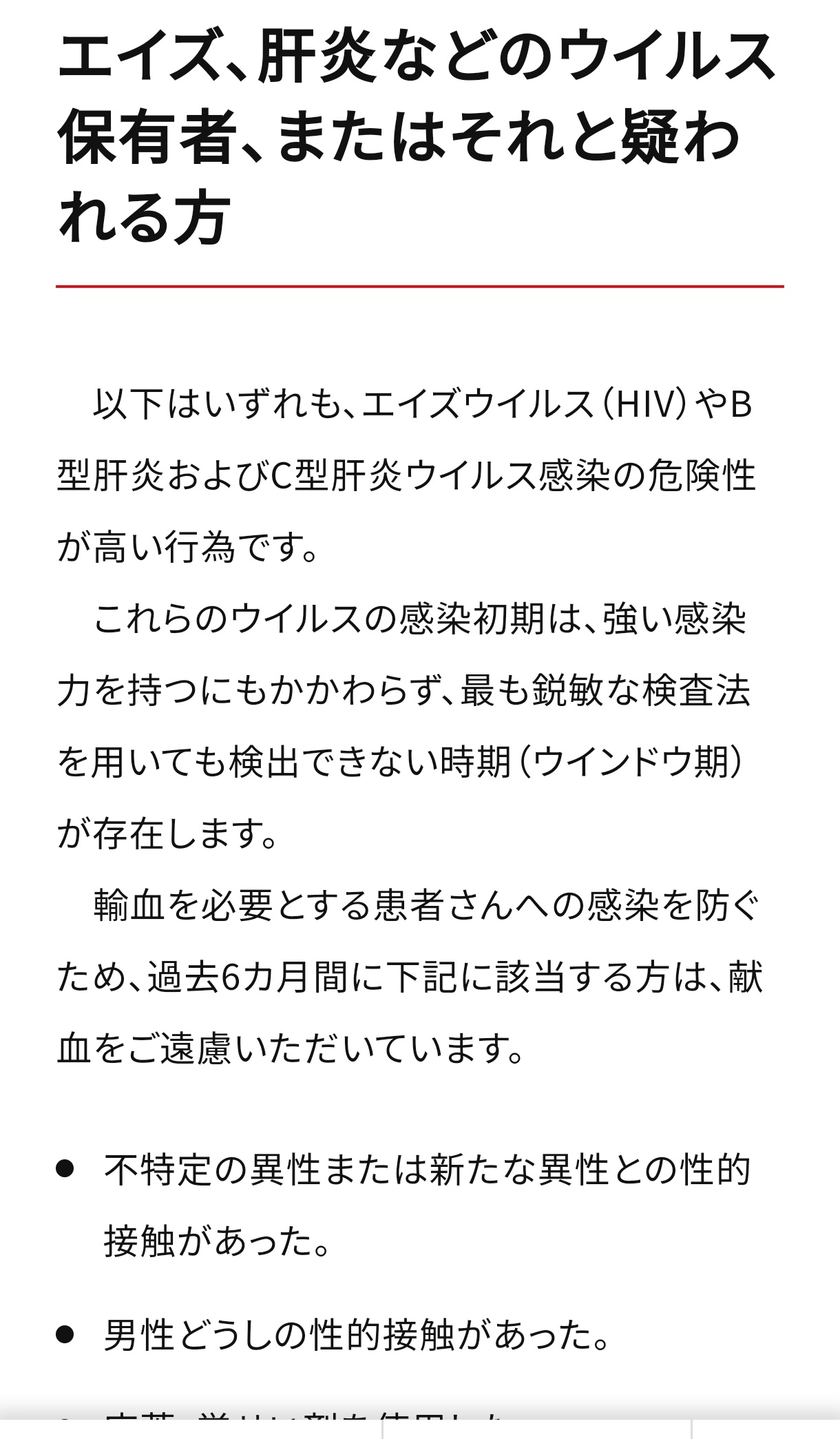 >不特定多数の人間と性交したものは献血してはいけない