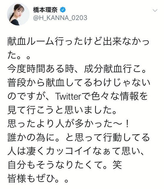 【速報】橋本環奈献血できず、一体なぜ