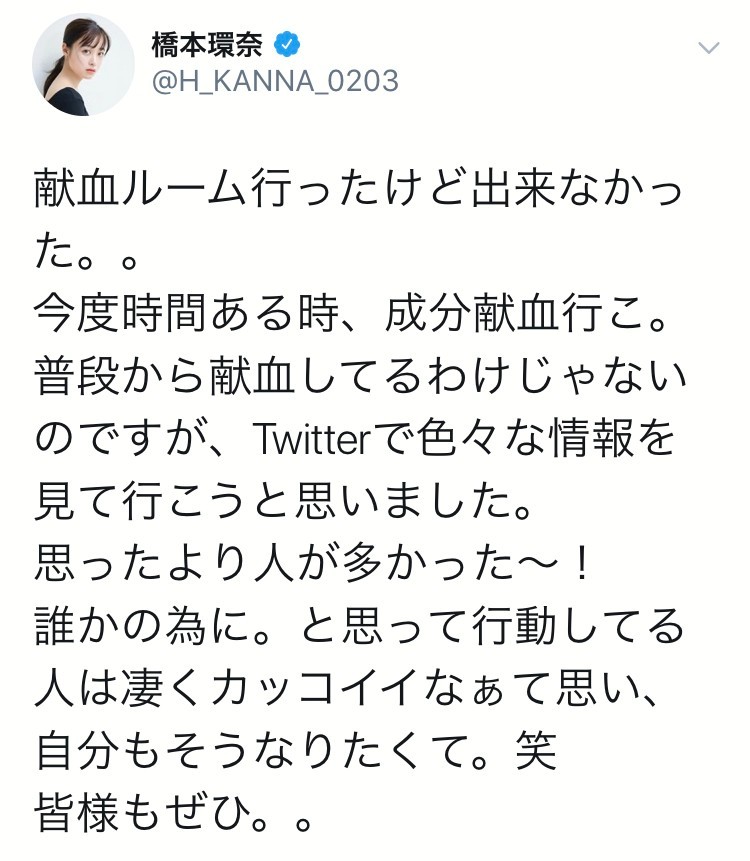 ちょうど昨日ケンコバのナイトで確か瀧本雫葉が引退したらしたいことで献血って言ってた
