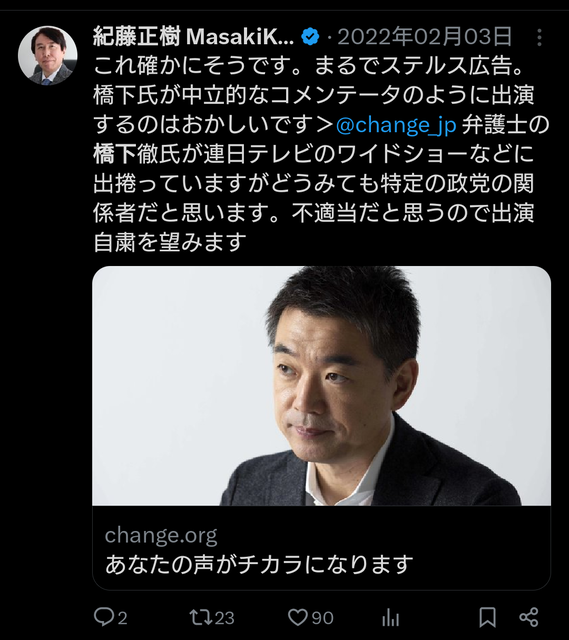 この中でも未だにフジや中居にも悪いところはあったけど被害者にも落ち度があるって論調で語ってた橋下はちょっと格が違う