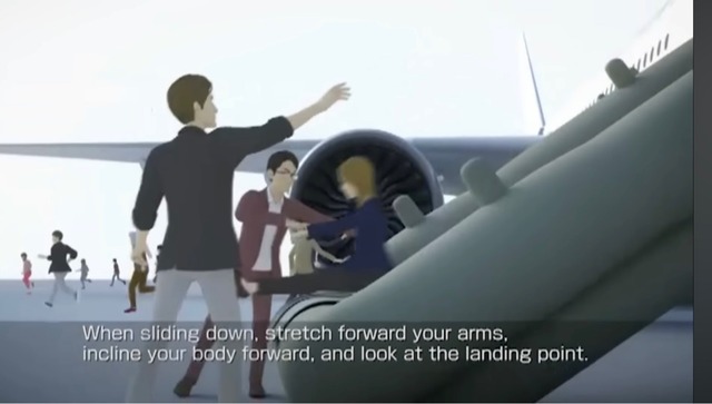 【画像】JALのお姉さん『脱出時に荷物は持たないでください!!』